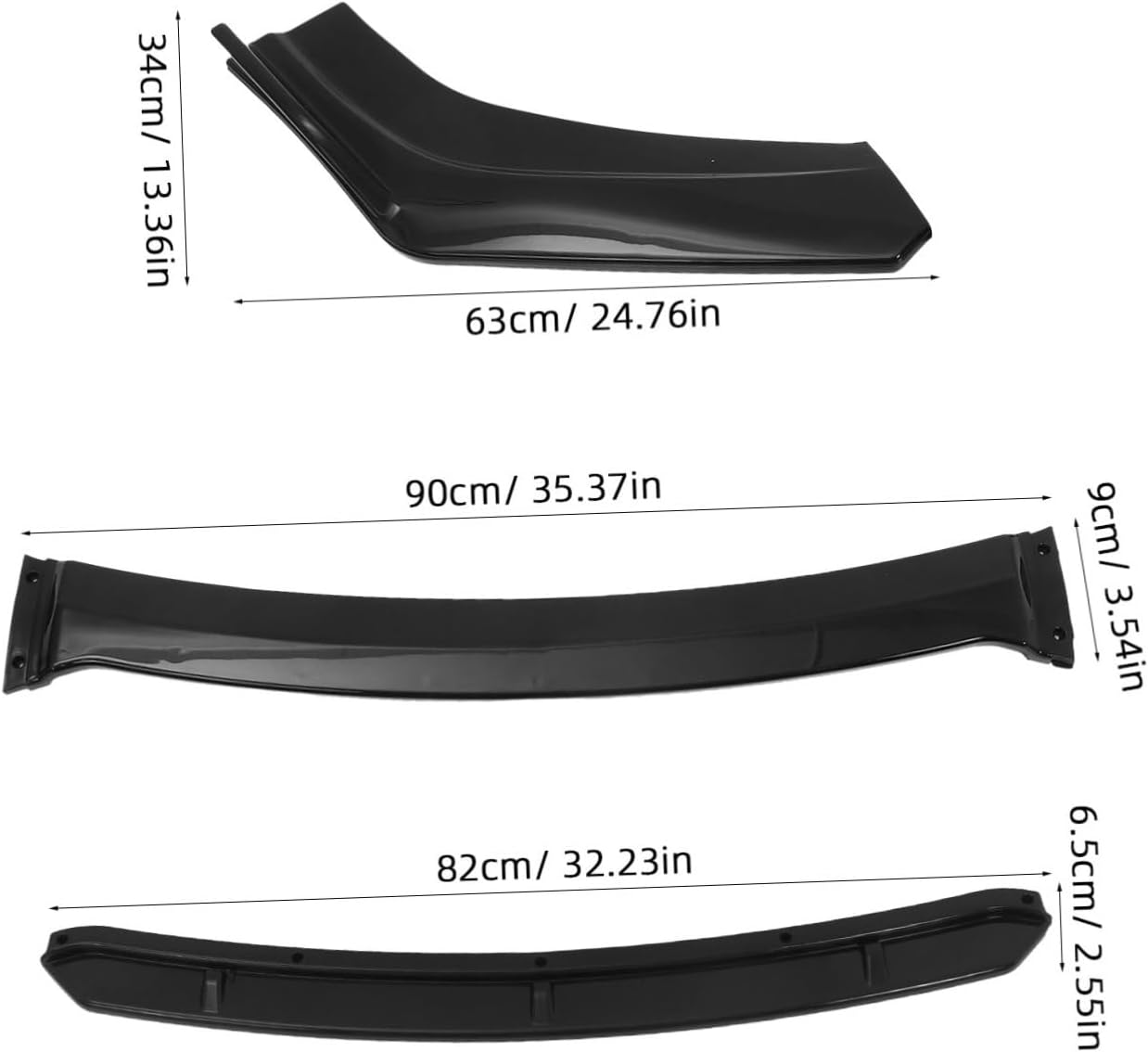 Package Include 1 x set of strips Characteristics - Size: 63.00X34.00X7.00cm/24.76X13.36X2.75in car front bumper guard strip -Material:PP car accessories -Easy installation: easy to install without the need for professional tools, making DIY modification more convenient car bumper protector guard -Stylish design: fashionable appearance design, adding style to your car decorative bumper strips - Size: 82.00X6.50X3.00cm/32.23X2.55X1.18in car bumper guard strip -Universal compatibility: suitable for most car brands and models, widely applicable bumper guard trims -PP material: made of PP materials, durable and provides collision protection front bumper protector -Effective protection: prevents collisions, protecting the body of your car from damage bumper strips guards stickers - Color: Black bumper protector strips - Size: 90.00X9.00X3.00cm/35.37X3.54X1.18in bumper protectorGoods Informationfront bumper guard The Car Front Lip Guard is designed to provide effective protection for the front of your car, preventing collision damage, it not only enhances the overall aesthetic of your vehicle but also adds a touch of style.car front lip spoiler Its construction ensures durability and performance.front bumper spoiler diffuser This lip strip is compatible with most car brands and models, making it easy to install