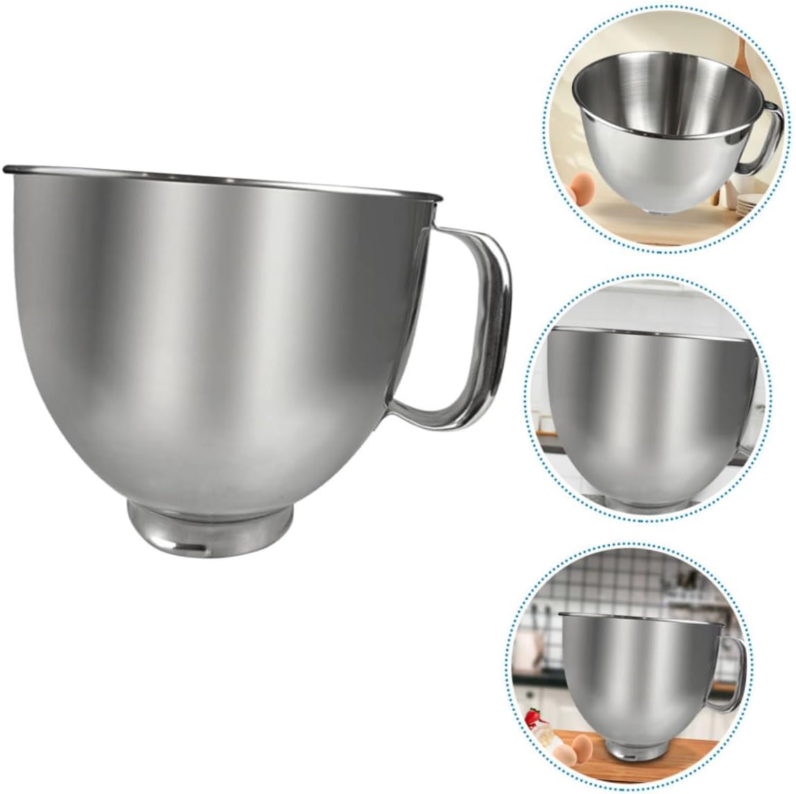 Package Include 1 x Mixing bowl Features -Size:22.00X22.00X19.00cm/8.65X8.65X7.47in food bowl -Capacity: 5L mixer bowl stainless steel -Material:Stainless steel replacement mixer bowl -Color:Silver stainless steel bowl -Note: The handle style is random kitchen mixer bowl - The bowl is designed with a flat bottom, making it easy to mix ingredients thoroughly mixer bowl for home. - Mixer bowl is compatible with stand mixers, allowing for easy interchangeability mixing bowl. - Mixer bowl features a convenient and a comfortable handle for easy pouring and handling mixer bowl. - The stainless steel bowl is also dishwasher , making cleaning up after baking a breeze mixer replacement bowl. - Mixer bowl is made of stainless steel, and long-lasting, suit to meet different baking needs bowls for mixer.Goods Descriptionmixer bowl for using with mixer, bring much convenience for daily life.mixer replacement parts If you are looking for a bowl for mixer, this stainless steel bowl will be a wise choice for you.mixer accessories bowl Made of stainless steel material, which is and for the lasting use