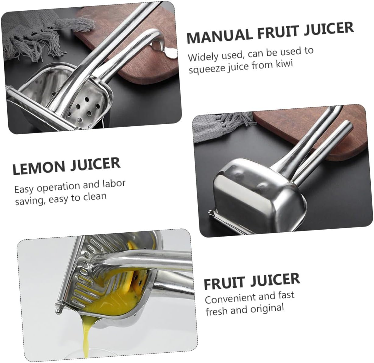 Package Include 1 x Handheld Fruit Juicer Characteristics -Material: Stainless Steel. heavy duty manual juicer -Size: About 25.00X11.00X8.50cm/9.82X4.32X3.34inch. manual fruit juicer -Color: Silver, handheld juicer squeezer -Product Info:Stainless steel juicer - A great to your friends, family and co-worker. portable juicer - Suitable for lemon, orange, , grapefruit and other fruit. juice squeezer - Made of premium stainless steel material, anti-rust and for use. manual juice squeezer - Portable handle, smooth and delicate, easy to grip. juice squeezer handheld - It is more safe for juicing and easier for cleaning. manual juicer squeezerGoods Descriptionheavy duty manual juicer Are you looking for a professional, yet fruit juicer? Are you in search of a sturdy, trustworthy tool that can do multiple jobs at once? , ! Our professional fruit juicer must meet you needs.manual juice squeezer It is one of the for you