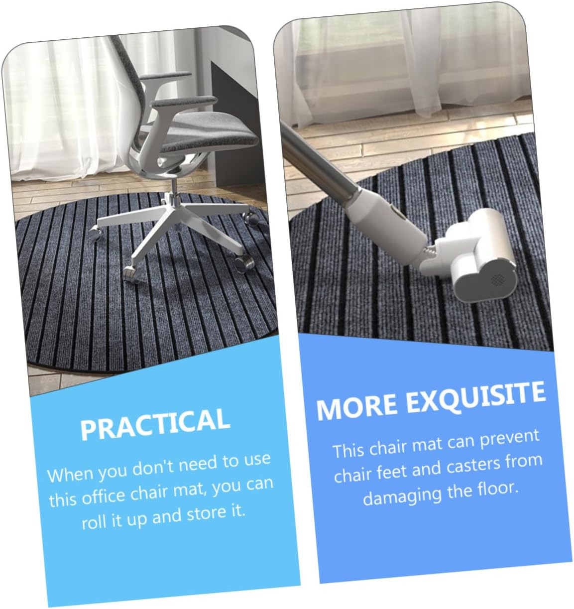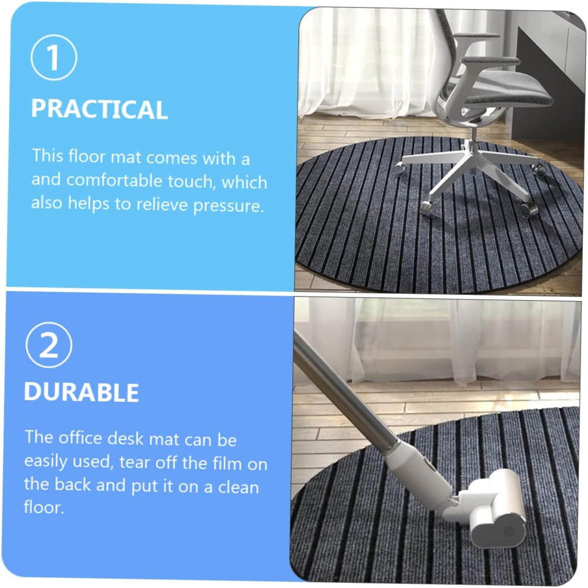 Package Include 1 x floor mat Features - Material: Blended office chair mat carpet - Color: Dark grey carpet chair mat - Size: 100.00X100.00X2.00cm/39.30X39.30X0.79inch swivel chair mat - The swivel chair mat can the noise from moving caster chairs desk floor mat. - It can be a practical present with fine workmanship and delicate details for your friends chair mat rug. - Also suitable for chair, sofa, floor, balcony, etc. Easy to remove the surface dust and desk chair mat for hardwood. - Simple and chic floor mat can bring you a fresh visual sense and excellent mood gaming chair mat rug. - Can be placed in the room, bedroom, living room, etc. Very practical chair mat for hardwood floors.Goods Informationdesk rug details with vivid appearance, also a nice decoration for your home.chair pad for hardwood Perfect for decorating your living room.chair mat To make your home floor more clean and comfortable, this decorative mat will be an