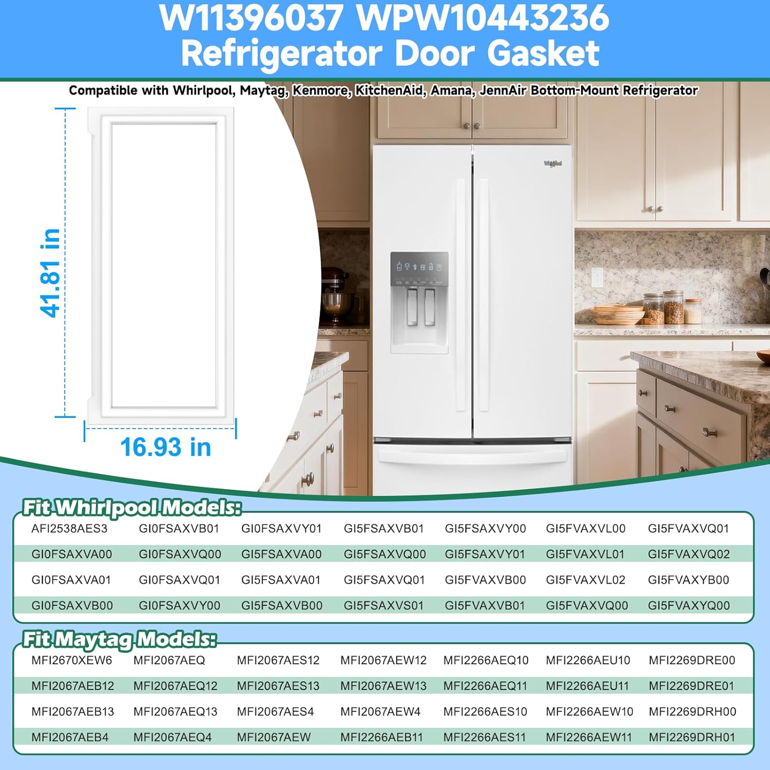 | Included Components | 20 x food grade plastic bags, 1x W11396037 WPW10443236 Refrigerator Door Gasket Replacement |