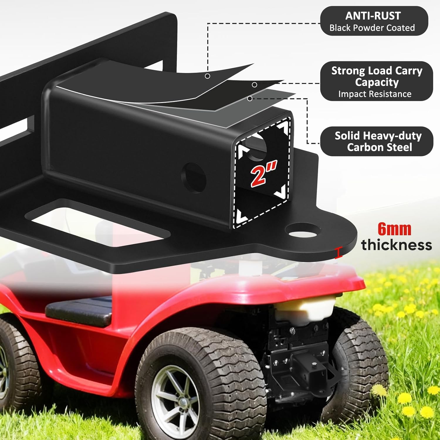 | Included Components | 1 x Magnetic Hitch Pin & Clip, 1 x Zero Turn Hitch with 2" Receiver, 4 x 1-2/5" carriage bolts, 4 x 2-2/5"carriage bolts |