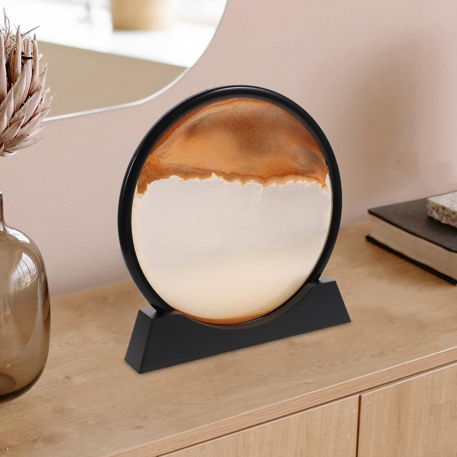 Description:The 3D moving sand art is a captivating addition to any living space, offering a serene and mesmerizing visual experience. Designed to alleviate stress and eye fatigue, this sand art is ideal for office workers, students, and anyone who spends long hours in front of a computer. Each flip of the sand art creates a unique and dynamic picture, providing endless entertainment and relaxation. Its elegant design makes it a standout piece for any room, adding a touch of sophistication and tranquility.Features:Calming Visuals: The continuous flow of sand creates a soothing and relaxing effect, for unwinding after a long day.Unique Design: Each turn produces a new and unique sandscape, ensuring that the artwork never looks the same twice.Elegant Decoration: Adds a touch of elegance and meaning to any space, making it a glamorous decoration for various occasions.Stress Relieving: Helps alleviate pressure and relieve eye fatigue, making it ideal for those who spend extended periods in front of a computer.Specification:Material: Sealing glass, colorless liquid, special sand, and air bubblesDimensions: 12 inchesColor Options: Blue or YellowPackage Including:1 x 3D Moving Sand Art