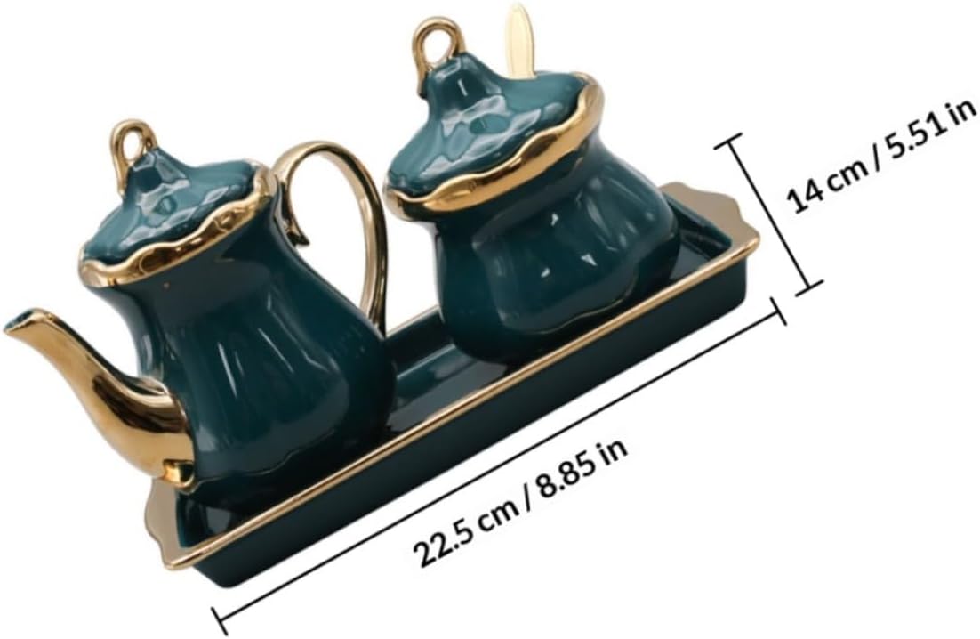 Package List 1 x oil can 1 x seasoning bottle 1 1 x spoon Characteristics -Product Info:Seasoning jar set -Material: Ceramic. - material and good craftsmanship its durability. - Multifunctional use, can be sauce dish, also can be used as a kitchen decoration Condiment Container. - Large capacity, large opening, easy to pour and take, equipped with a spoon, easy and fast to take spice jars. - The color, smooth surface, and high-grade gold verge make this product look more and fashionable. - Manufactured with premium ceramic material, practical and enough to use.Goods Informationcondiment jars Fired by high temperature, the color is beautiful and uniform, and the design with gold rim looks very delicate.condiment pots The surface of the ceramic is bright, shiny and very delicate.Condiment Container This is a beautiful and practical seasoning jar, made of ceramics, safe and .seasoning jars Let you feel the pleasure of cooking food