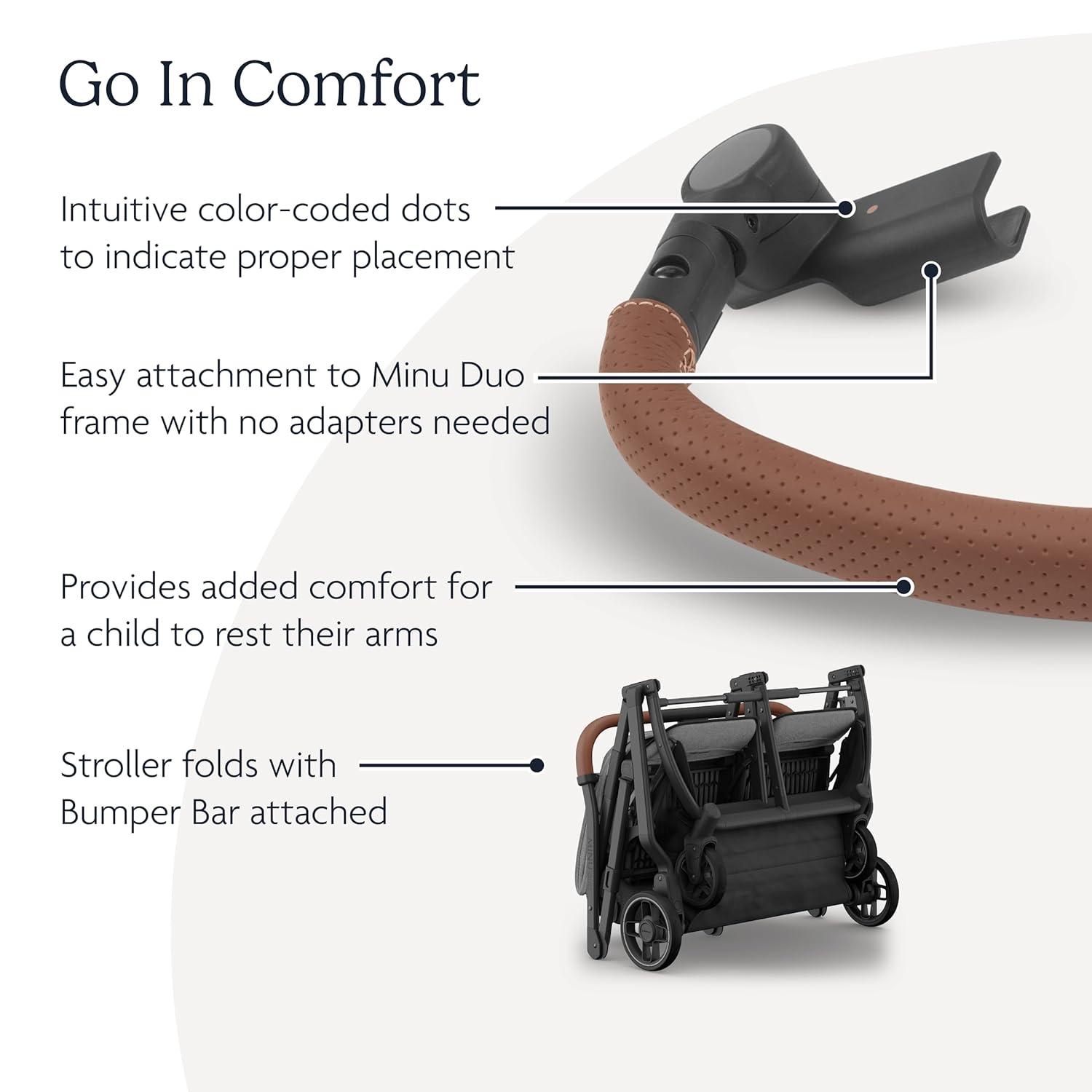 The Minu Duo Bumper Bar provides additional comfort and protection for your child while strolling. Available in Black and Saddle leather Ability to fit two Bumper Bars on the Minu Duo Can fit a combination of various Minu Duo accessories like a Snack Tray or car seat adapter to tailor to each child’s needs.