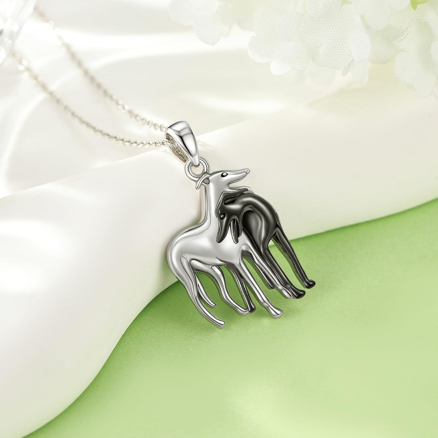 URONE 2 Greyhound Necklace 925 Sterling Silver Greyhound Pendant Jewelry Dog Gifts for Women