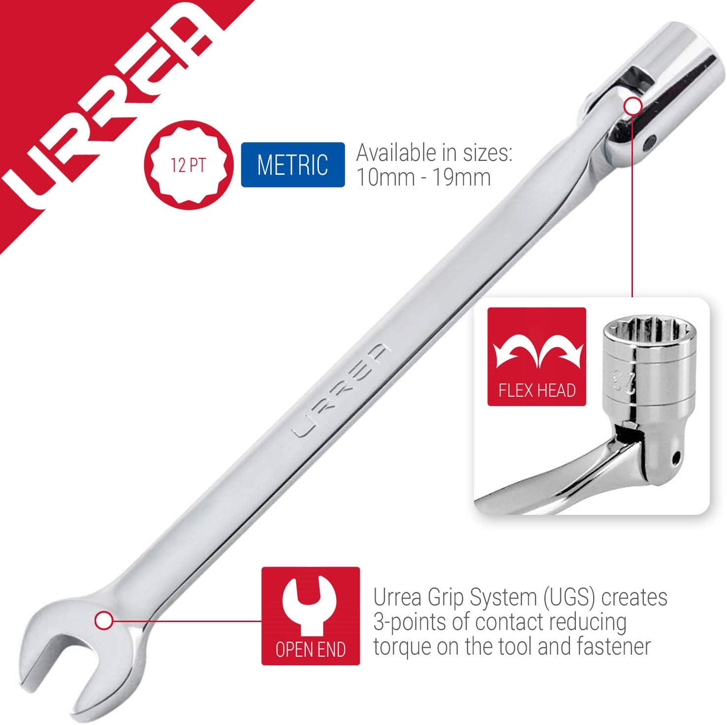 15° inclination. Reinforced design supports torque applied with flex socket. Lobular 12-point socket box-end, 180° rotation. Flex socket to work in hard to reach areas. Manufactured with chrome-vanadium steel with a full polished finish. 15 degree inclination. Reinforced design supports torque applied with flex socket. Lobular 12-point socket box-end, 180 degree rotation. Flex socket to work in hard to reach areas. Manufactured with chrome-vanadium steel with a full polished finish.