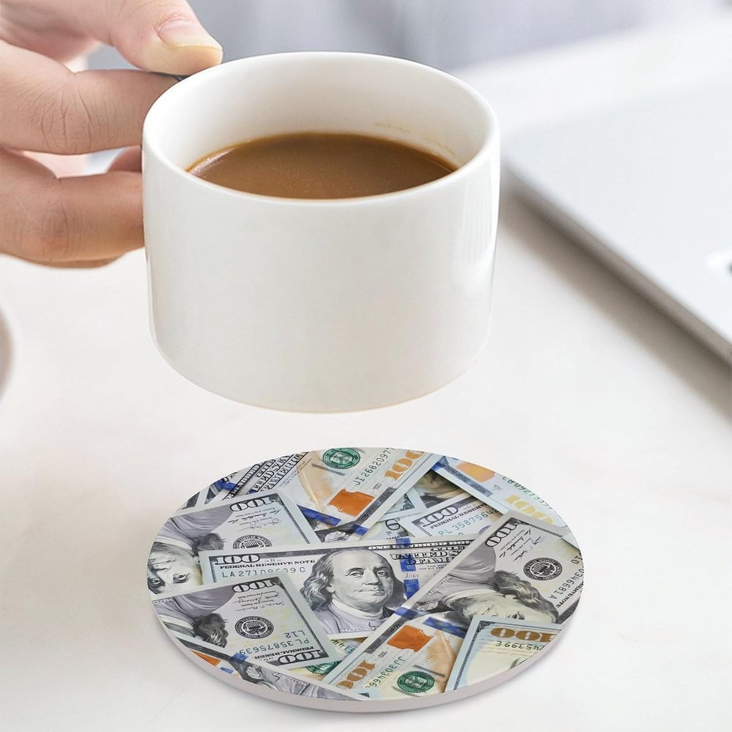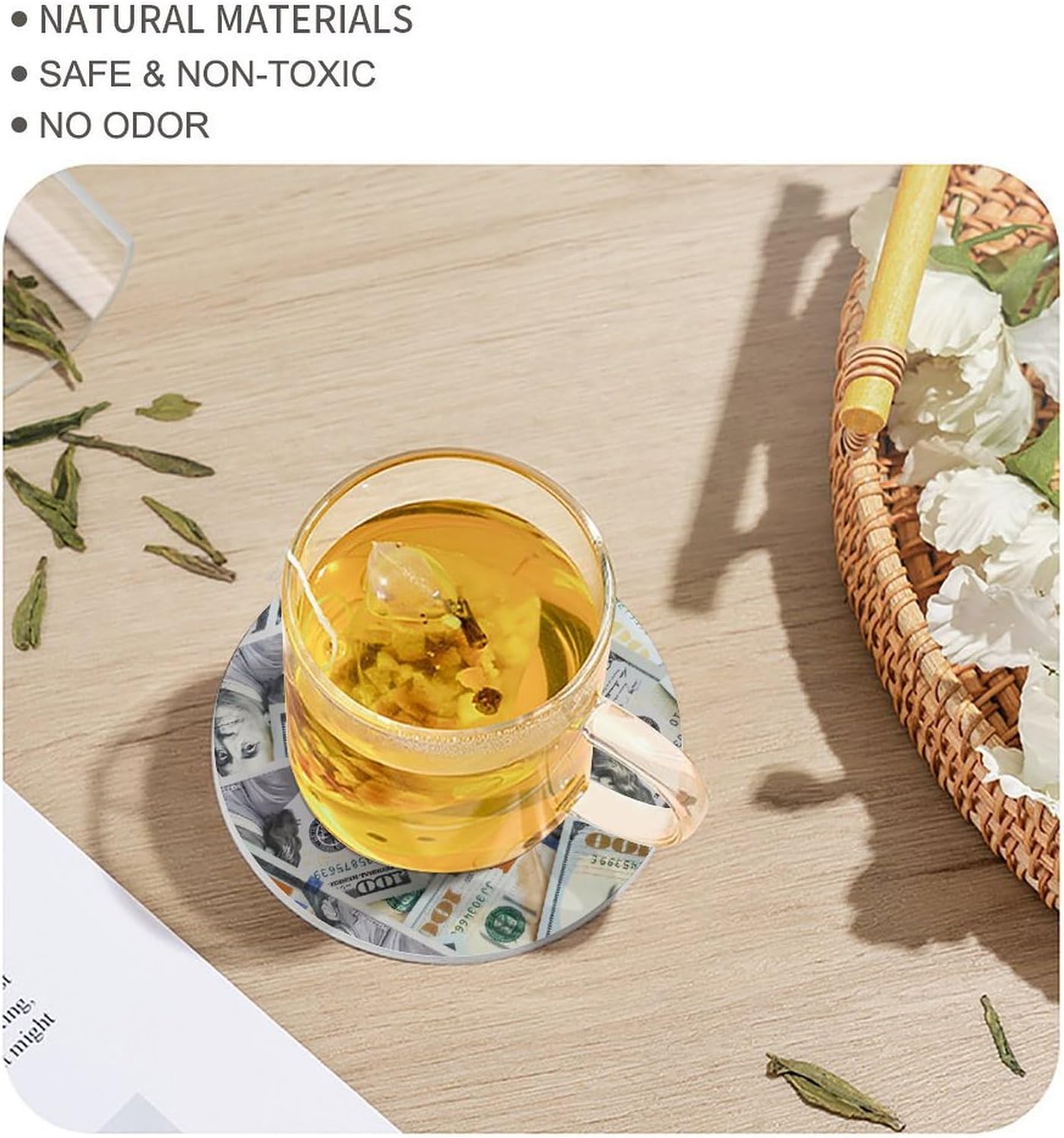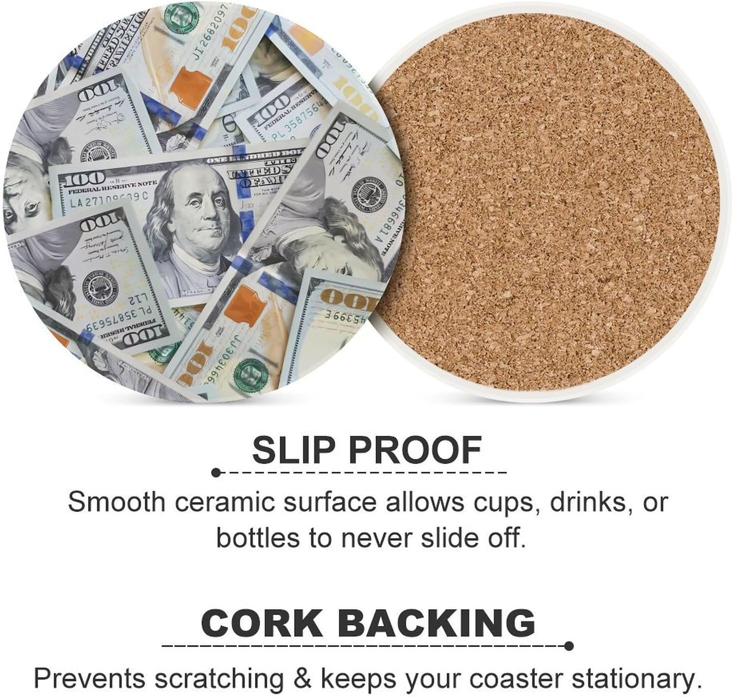 Cute Printed Round Drinks Absorbent Ceramic Coaster with Cork Base Suitable for Kinds of Mugs, Cups, Prevent Tabletop Wear And Scratches, and is Easy to Clean