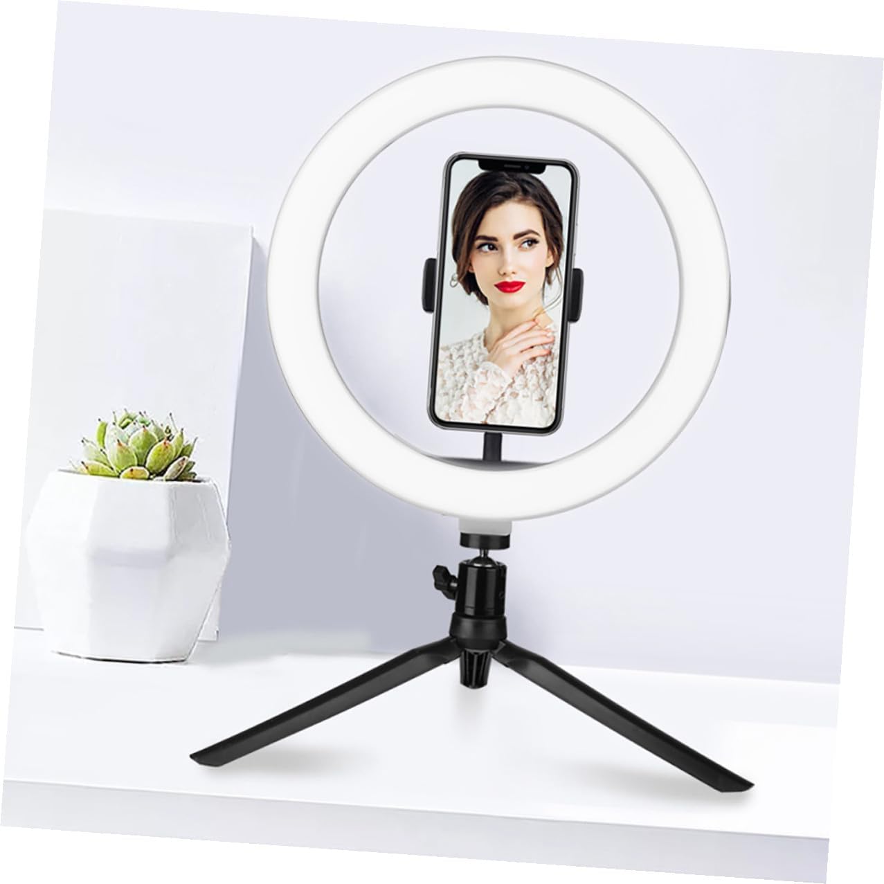Package List 1 x fill light 1 x tripod head 1 x iron stand 1 x shutter Features -Light Source Power: 8-10W mobile phone holder. -Voltage: 5V mobile phone tripod stand. -Color Temperature: 3000-6500K. -Light Source Type: 2835 LED phone stand for live. -Color: Black. -Material: Plastic, Iron. -Product Info:Fill light bracket -Size: About 39.00X25.50X18.00cm/ 15.33X10.02X7.07in. - The tripod is beautiful and practical, and the support is stable phone holder for recording. - It comes with a remote, which is convenient and stand tripod. - Three-color dimming light mode, suitable for different scenes. - USB power supply, multi-functional integrated molding, such as beauty, skin brightening, light supplement, etc phone holder. - The ring light connection clip can be placed on the mobile phone, and the horizontal and vertical screens can be switched freely phone holder for filming.Goods Descriptionmobile phone selfie fill light bracket This mobile phone holder is made of and is durable.tripod for phone It comes with a remote, which is convenient and quick.phone tripod With light filling function, it is perfect for live broadcasting.tripod for cell phone Fine workmanship and details