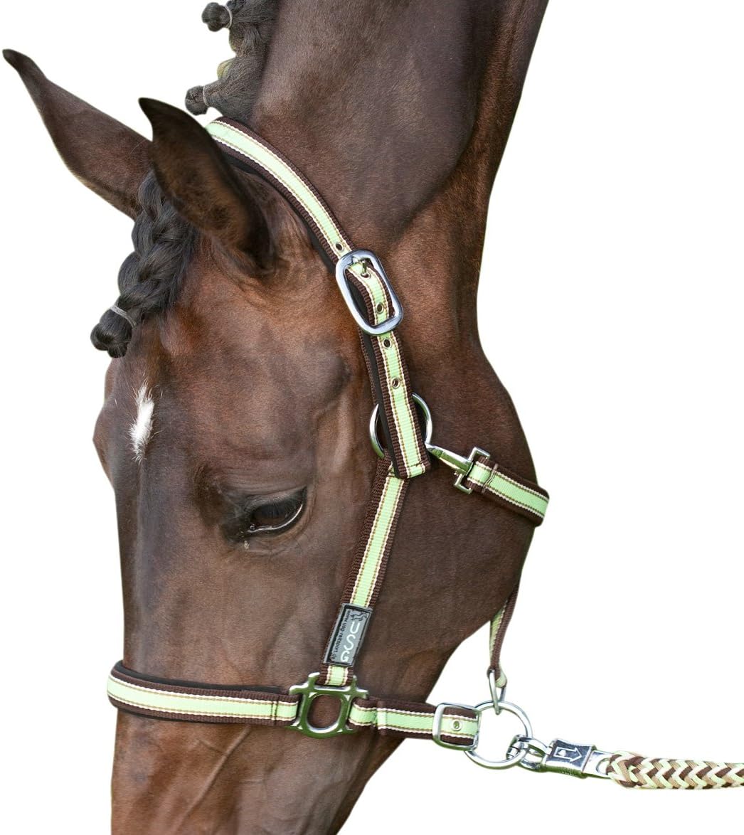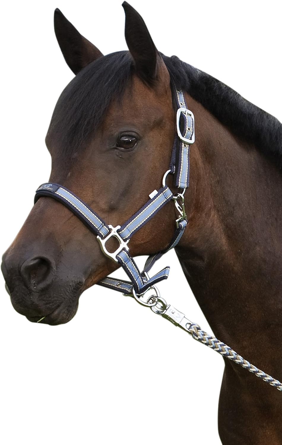 Halter light blue/brown, silver coloured fittings, soft padded, black, orange colour.