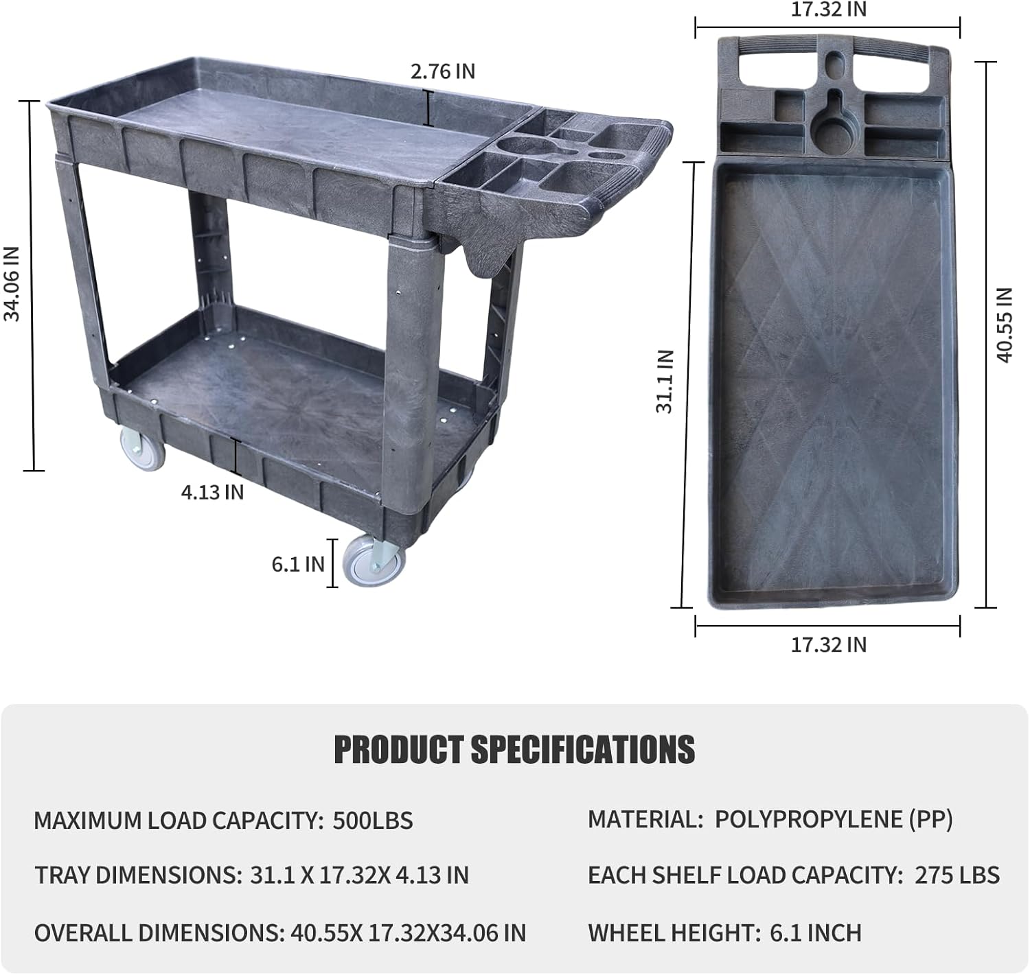 | Additional Features | heavy duty rolling utility cart, indoor utility carts, 2 tier utility cart, lunch room utility cart, heavy duty plastic utility cartheavy duty rolling utility cart, indoor utility carts, 2 tier utility cart, lunch room utility cart, heavy duty plastic utility cart |