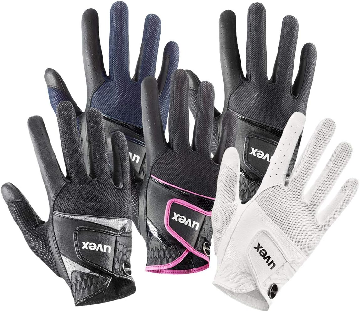 A firm and flexible grip even under moist conditions: the uvex sumair riding gloves are the perfect companions for intensive rides when maximum control is needed. Moisture, slippery reins, high intensity for horse and rider – uvex sumair gloves have been designed exactly for these conditions. Non-slip polyurethane material on the palm is non-slip and especially durable to provide maximum grip and sensitive control of the reins. The breathable mesh material covering the outer hand and thumb quickly wicks away any moisture and ensures optimum ventilation. At the same time, the composition of highly functional materials creates a unique look: glossy synthetic leather, polyurethane and mesh in a wide range of colours add a high fashion factor. Black detailing and a clean sporty line make these gloves icons of style. With a short cuff, uvex sumair is the ideal glove for an elegant performance in the saddle even in warm weather.