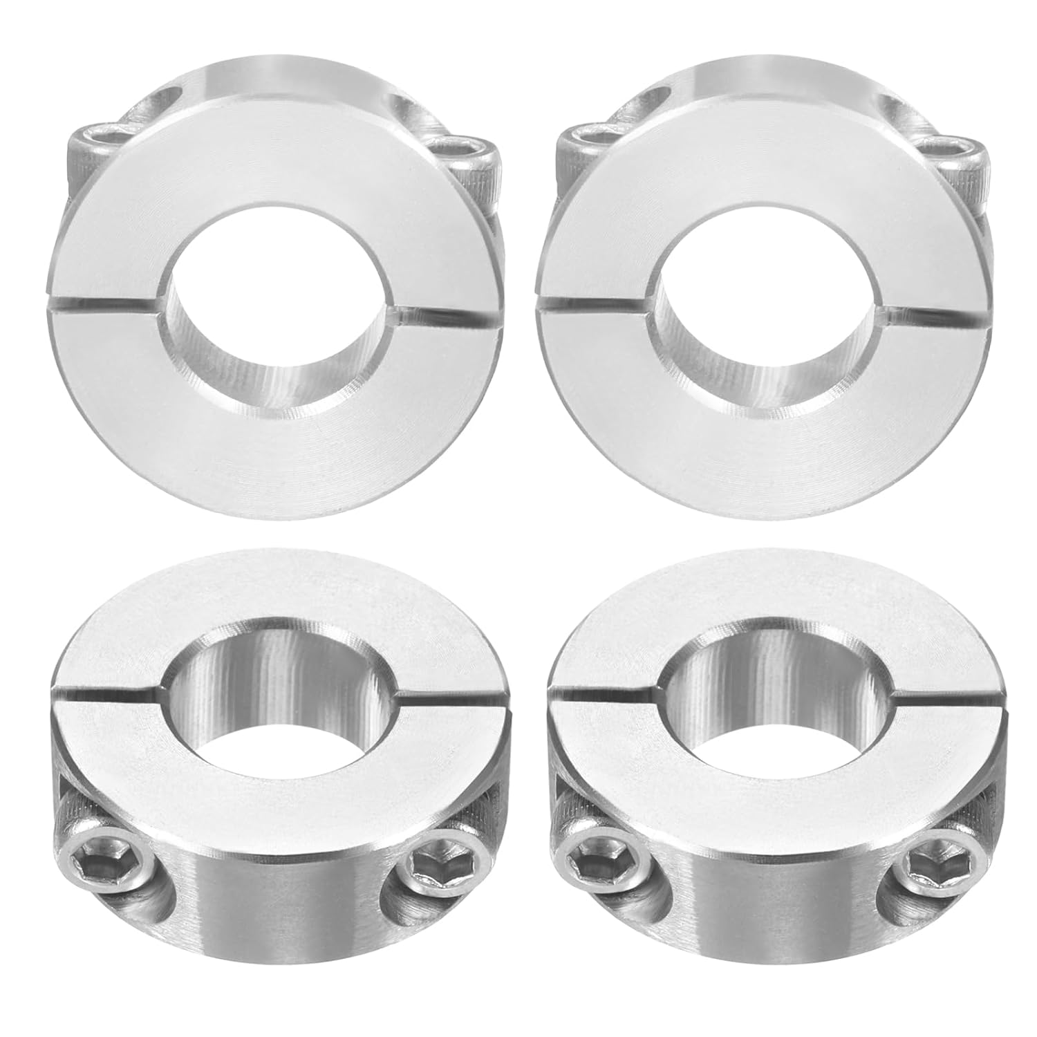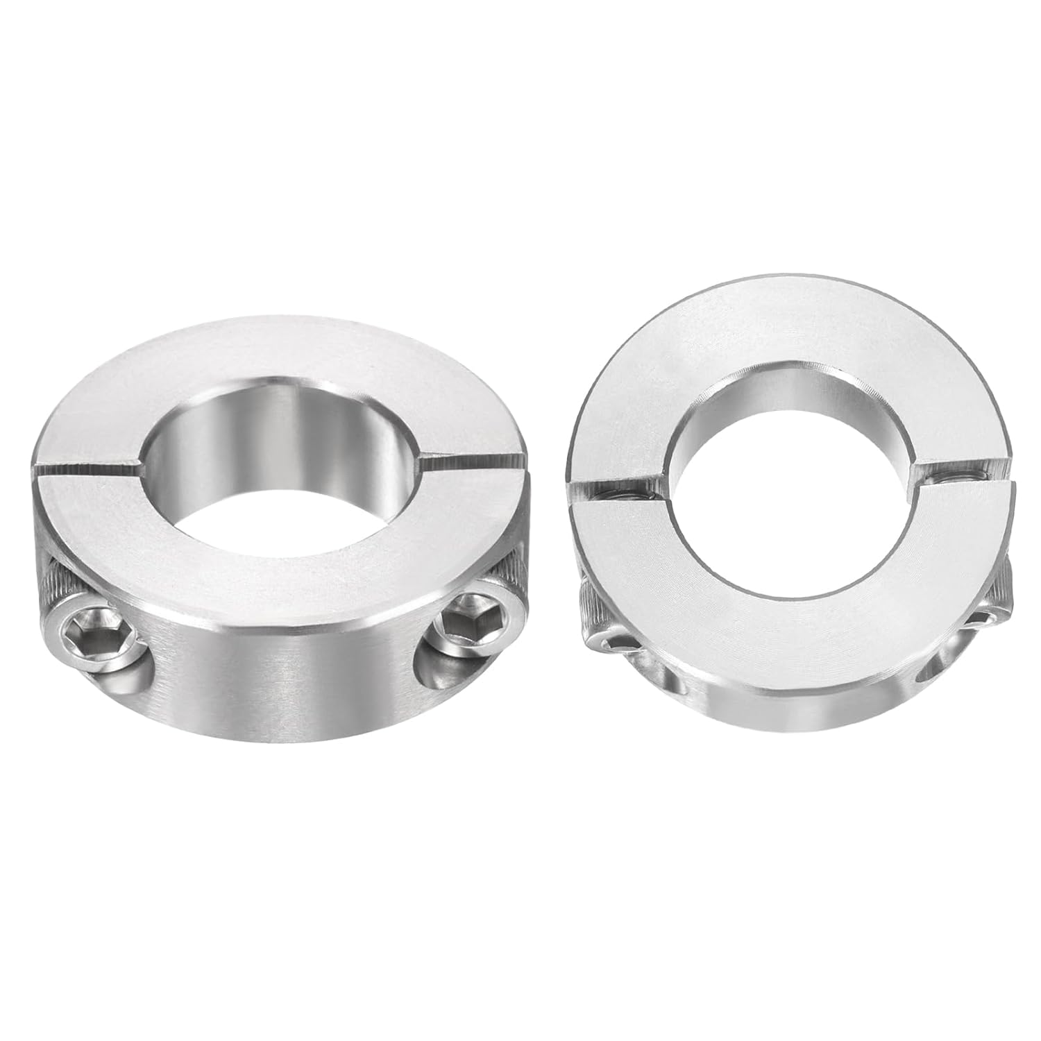 Description:Durable Construction: Made of 303 stainless steel, high strength, excellent corrosion resistance, and strong locking force. Round bore collars are commonly used as positioners, spacers, stops, and bearing surfaces.Wide Application: These collars are widely used across different industries, including automotive, robotics, and manufacturing. They can be used in various equipment and machinery to secure gears, pulleys, sprockets, or other components onto shaftsSecure & Accurate Positioning: These collars provide a secure grip on the shaft, preventing slippage or movement of components. Used for shaft positioning, linear slide stop, and fixing the axis of rotationEasy to Install: Split collars can be quickly installed or removed by opening the collar and placing it around the shaft, then tightening the screws to secure it in place