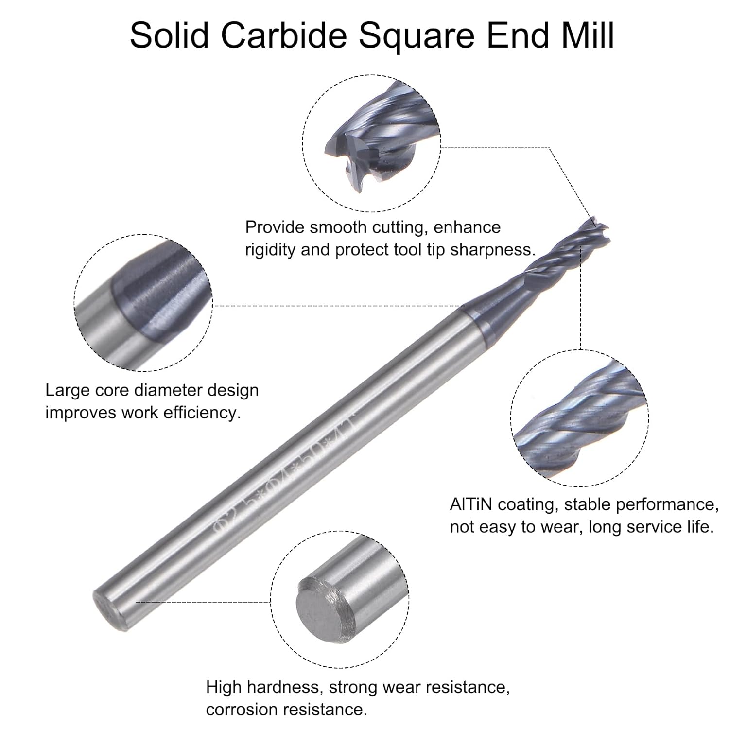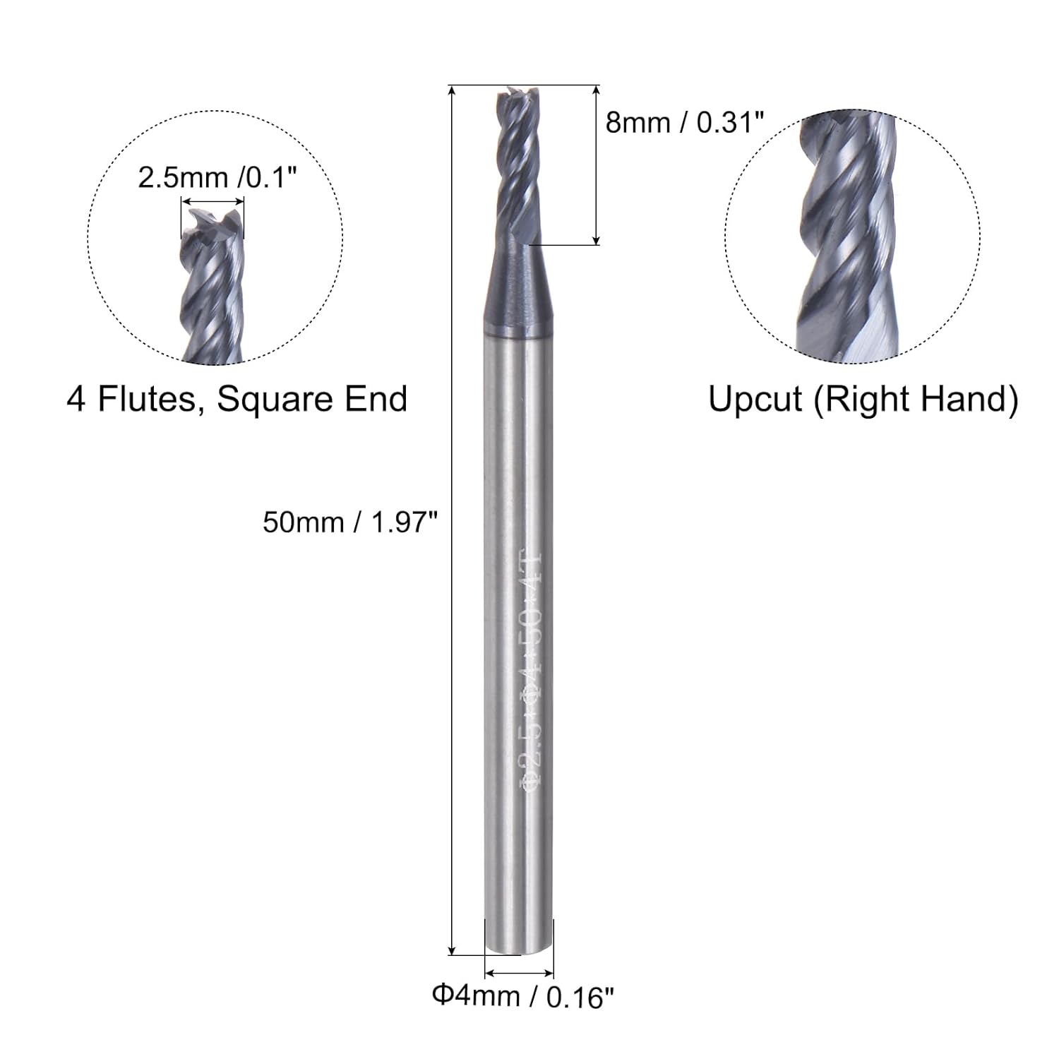 uxcell 4pcs 2.5mm Dia 4mm Shank Square Nose End Mill 4 Flutes HRC45 Carbide AlTiN Coated CNC Router Bits Cutter Tools for End Milling CNC Machining