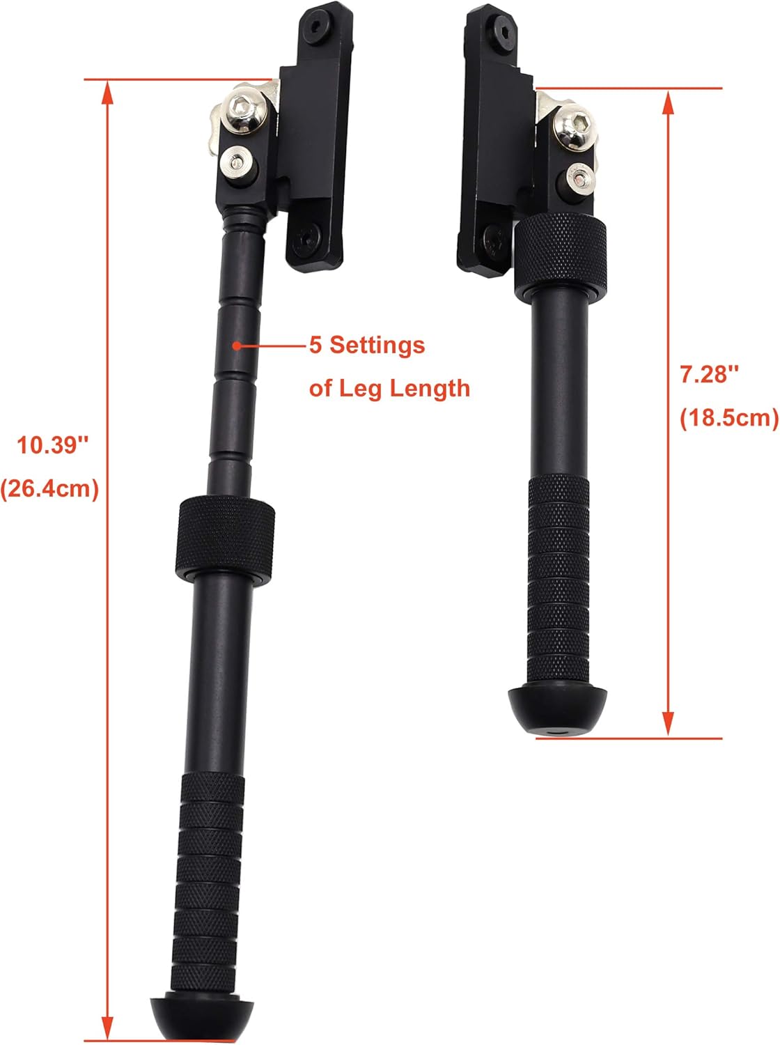 Material: Constructed of lightweight aircraft grade aluminum, finished in matte black anodizing. Stable support: locking in 5 positions by a 180 degree arc, Rubberized stable support used for correct shooting. Easy Installation: Attaches directly to the mlok handguards at the 3 and 9 o'clock positions. Changeable and Foldable: Height adjustable from 6.5 to 9 inches, bipod legs can be folded forward and back. What's Included: The package includes 1 separate V8-style piece of a 6.5-9 inch mlok rifle bipod.
