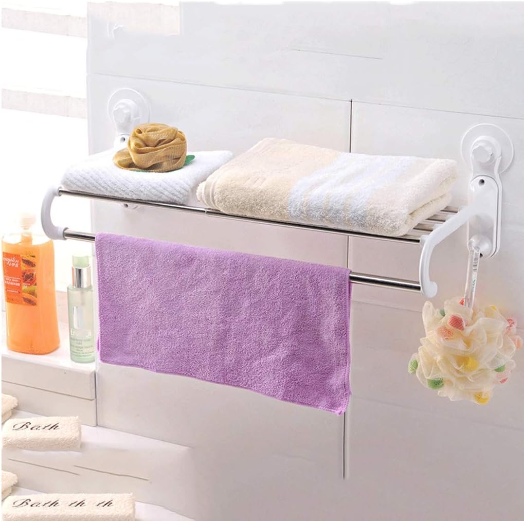 : Towel rackProduct material: stainless steel and ABSInstallation type: suction cupNote: Suitable for smooth surface, glass, metalProduct size: 53cm*19.5cmThe suction cup is made of ABS friendly material, which is and does not change color.Towel bar is made of hand-polished stainless steel for daily scratching, corrosion and rust.Fast installationThe rounded edges and corners are within reach and thought-provoking