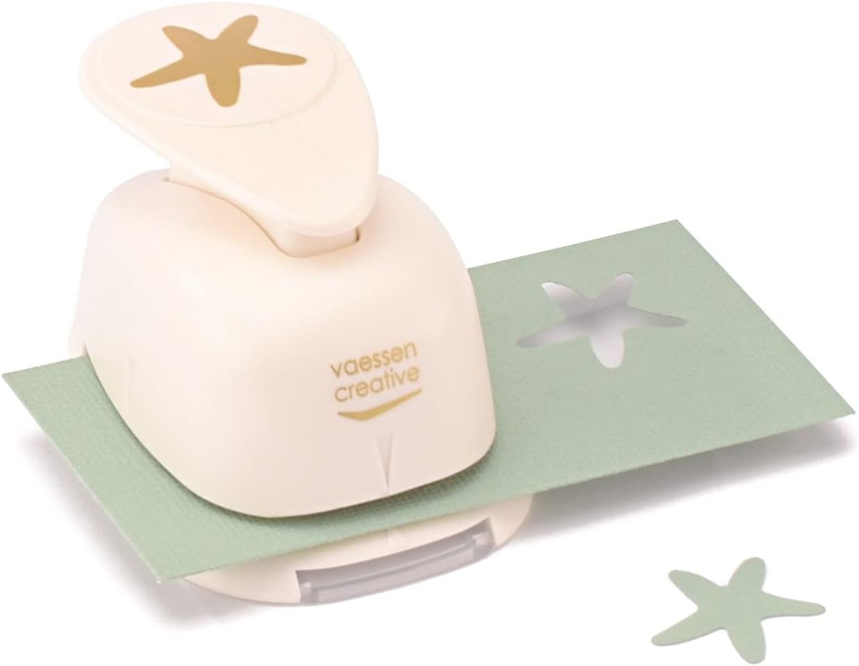 Create beautiful cards and decorate your craft project with this Summer craft punch set by Vaessen Creative. The punches are easy to use and punch perfectly every time for crisp, ideally shaped designs from cardstock and different kinds of paper. Craft punches are the perfect sidekicks for decorating cards, scrapbook pages, planners, labels, invitations and other crafting projects. You can use the cut-out shape or the stencil created by punching.The punch, designed for both beginning and experienced crafters, is easy to use. Simply slide your paper into the punch and press down on the lever to achieve crisp, perfectly punched shapes. For best results, always use the punch on a flat, stable surface and insert your paper at a 90-degree angle to ensure accuracy. To keep your punch in top condition, occasionally punch through aluminium foil to sharpen the cutter.This Summer paper punch set by Vaessen Creative contains 5 punches with the following cut-out sizes: sunflower (Ø 2,5 cm), palm tree (1,9 x 2,2 cm), dolphin (2 x 2,2 cm), sea star (2,3 x 2,4 cm), sun (Ø 2,5 cm). It is suitable for paper weighing min. 90 to max. 250 gsm. If you want to punch thinner paper, punch thicker paper (up to 160 gsm) along for a clean cut. You can also use the punch for punching through thin sheets of cork, scrapbook paper, cardstock, photos, decoupage paper and thin foam. Vaessen Creative has a large array of craft paper punches in various shapes and sizes, perfect for making all kinds of crafts.