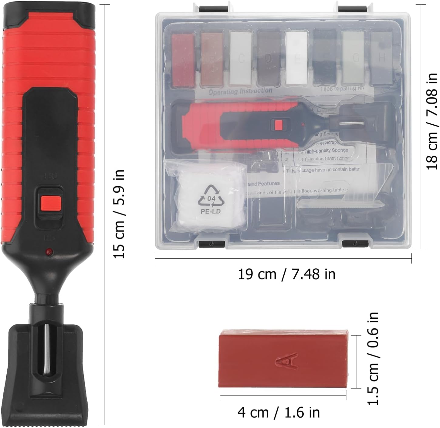 Package List 1 x heating pen 8 x wax blocks 1 x scraping block 1 x sponge 1 x cleaning cloth Characteristics -Material:Wax, ABS tile repair -Size:7.50X3.20X2.70cm/2.95X1.26X1.06in tile repair kit -Color:Assorted Color ceramic tile paint kit -Size:17.00X3.70X3.00cm/6.68X1.45X1.18in tub repair kit -Size:4.00X4.00X1.00cm/1.57X1.57X0.39in countertop repair kit -Size:3.80X1.60X1.10cm/1.49X0.63X0.43in porcelain repair kit -Size:19.00X19.00X0.10cm/7.47X7.47X0.04in tile filler - This floor repair kit is made of portable and durable , making these wax blocks last for a long time without any damage when used ceramic sink crack repair kit. - Strong, wear-resistant, strong load-bearing capacity, not easy to deform and break porcelain sink repair. - The different color restoration tool kit features a variety of to help restore laminate floors and different surfaces in the colors crack filler. - Easily fix or repair any damage or scratches in an instant. The tool kit for repair of scratches at home tub repair. - The tile flooring kit is manufactured and designed with rapid heating technology, heaters provide fast and high heat without wasting any time. Just apply heat to the wax to fix things quickly and easily paint for ceramic tile.Goods Descriptiontile repair Are you looking for a professional, yet reasonable ceramic tile repair kit? Are you in search of a sturdy, trustworthy tool that can do multiple jobs at once? , ! Our tile filler must meet your needs, this ceramic tile repair kit is one of for you