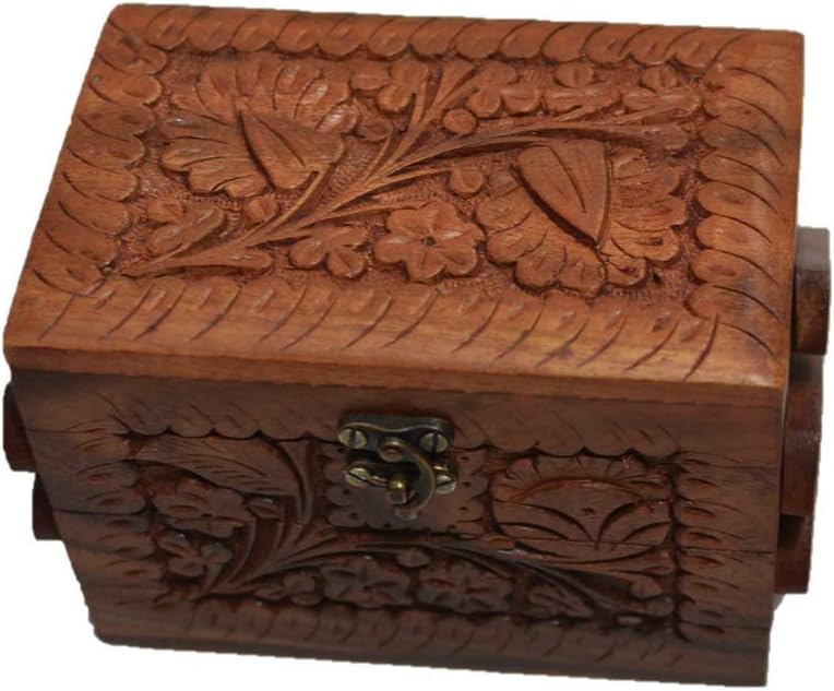 A perfect Valentine's gift for her, this handcrafted jewelry box offers a safe space for precious items like earrings, rings, and necklaces. Featuring intricate floral carvings and a secret lock, it doubles as a timeless Eid-themed centrepiece for side tables or countertops. Crafted with care and measuring 8"x5"x5", this elegant keepsake box is ideal for safeguarding valuables or gifting during festive celebrations. Why Choose This Box: Valentine's Gift-Ready Design: Combines practicality and elegance, perfect for Eid surprises. Secure & Spacious: 3 compartments and a secret lock to organize and protect jewelry. Versatile Décor: Adds a touch of sophistication as a decorative accent or Eid-themed display. A thoughtful choice for Eid celebrations, blending tradition with functionality.