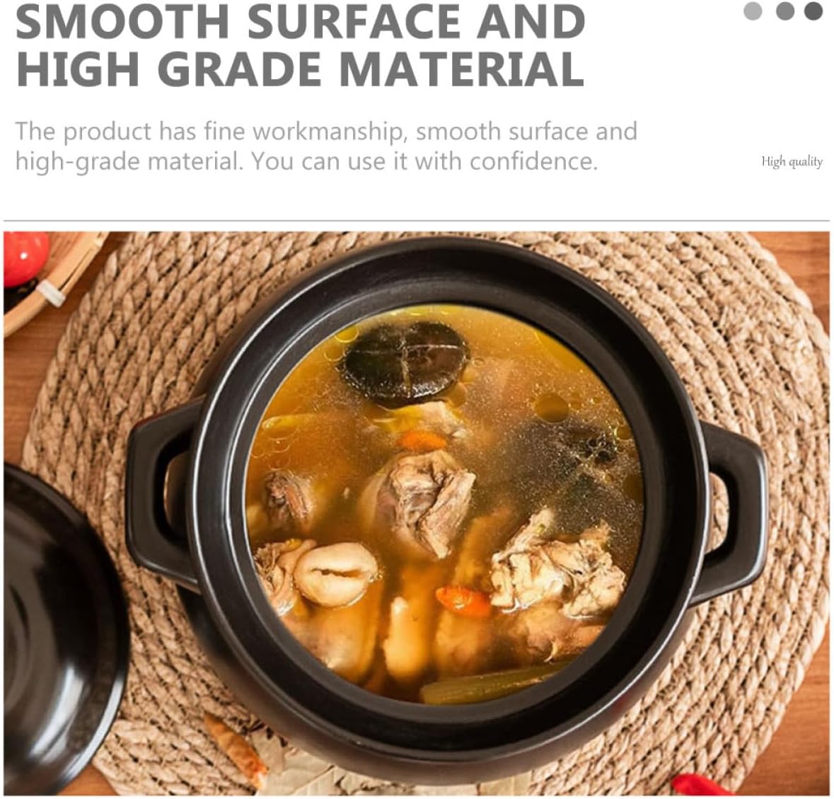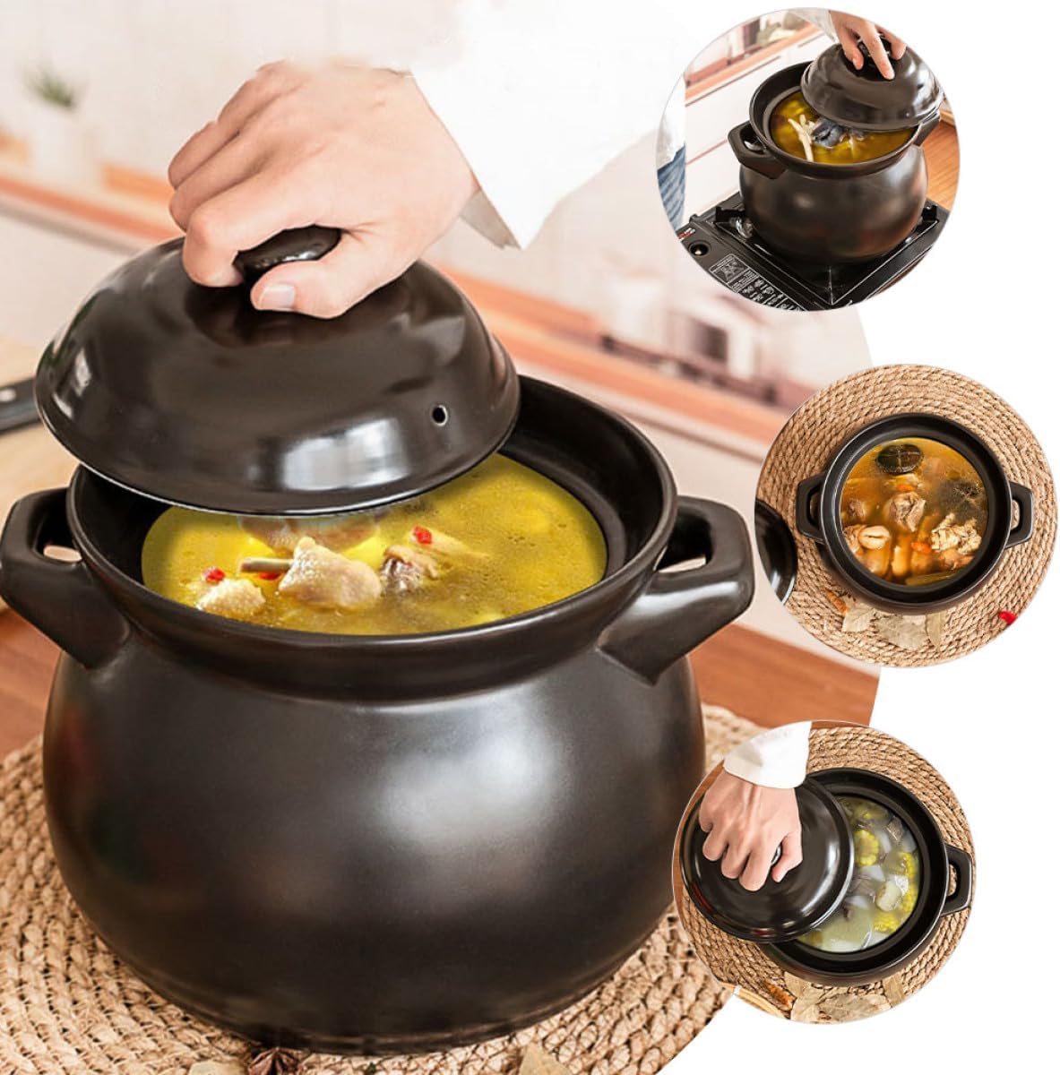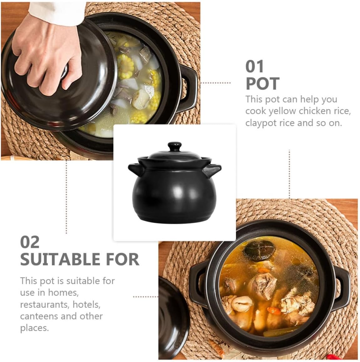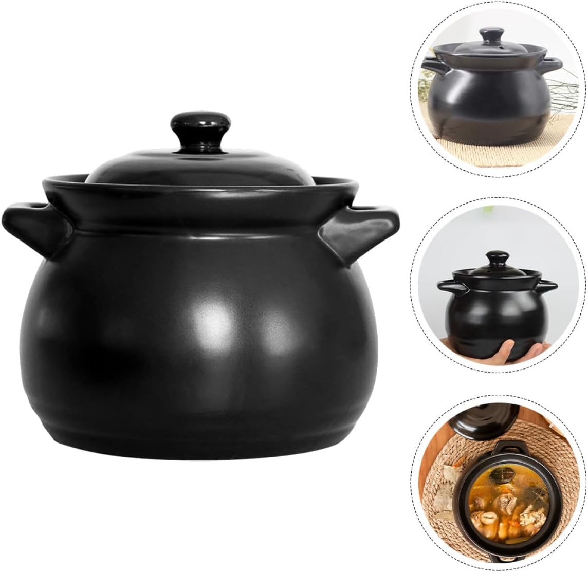 Package List 1 x Ceramic Pot Characteristics -Material: Ceramic -Color: Black -Size (1.1L): 13.00X13.00X12.50cm/5.11X5.11X4.91in -Product Info:High temperature stew pot -This product uses and is . Not easy to damage and deform. -When you need to use it for a long time, this product will soon become your good helper casserole pot. -This pot can help you cook yellow chicken rice, rice and so on Stew Soup Pot. -This pot is suitable for use in homes, restaurants, hotels, canteens and other places casserole soup pot. -The product has fine workmanship, smooth surface and material. You can use it with confidence.Goods Informationstovetop ceramic stew pot Food-grade are , allowing you to enjoy your cooking time more assured.Stew Soup Pot You can use it to make yellow braised chicken, soup, and so on.pot for soup This is a multifunctional pot, made of excellent , and practical, non-sticky, and easy to clean