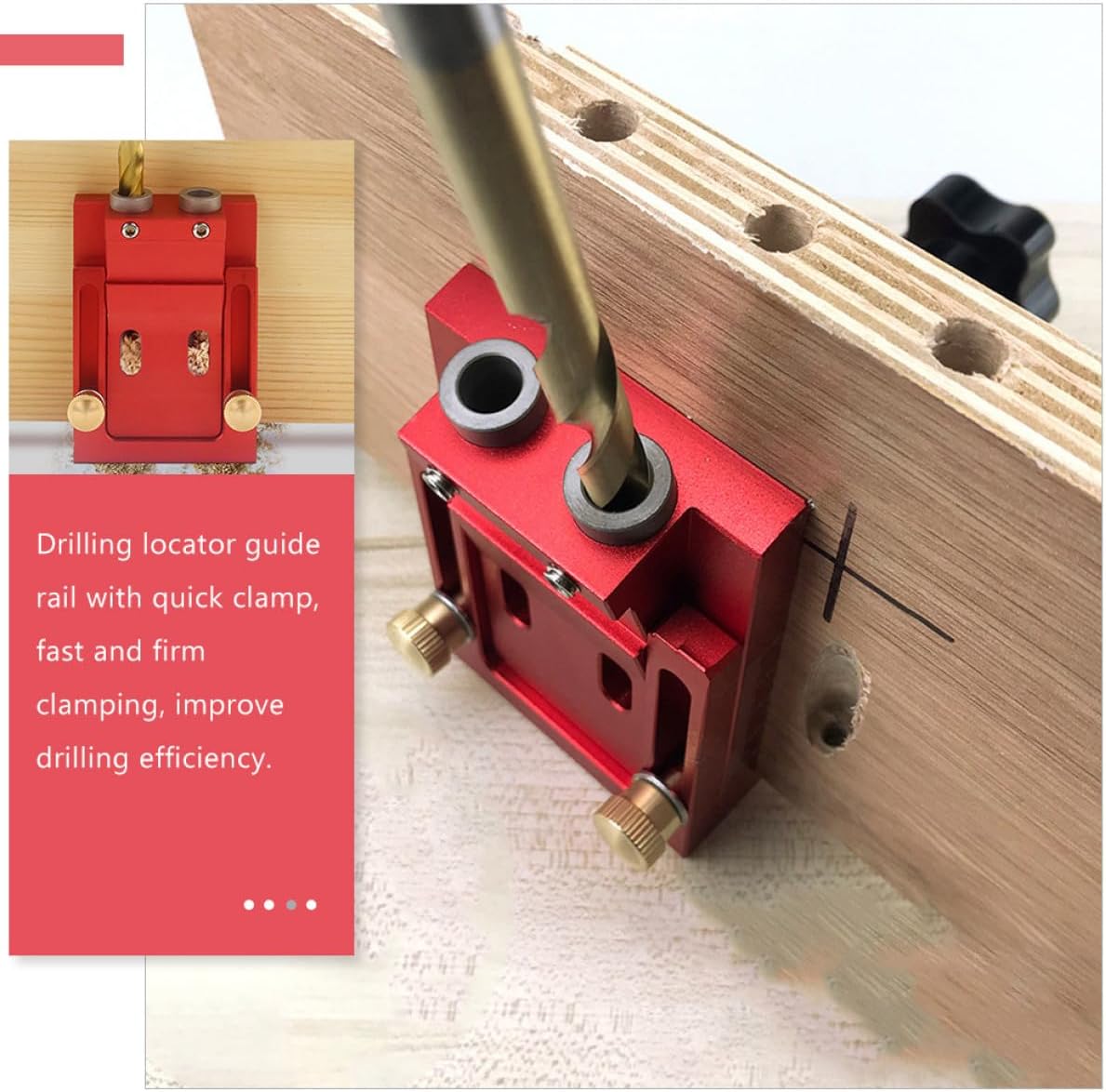 Package List 1 x locator 10 x plugs 1 x drill bit 1 x bit 1 x wrench x screws Characteristics - Size: 13.20X9.80X6.50cm/5.19X3.85X2.55in -Material:Aluminum alloy - Color: Red, Random Color Accessory Applicable plug diameter: 9mm drill angle guide -Product Info:Punching locator Clamping range: 1-38mm wood working jigs - Stable characteristics, high performance and in great reliability, simple, easy to install woodworking hole opener. - with aluminum alloy, iron, wood and ABS, not easy to rust or crack hole puncher for woodworking. - No complicated measurements or math required, suitable for novices, hobbyists and professionals alike drilling template. - Double 15 degree drilling angle to ensure accurate screw connection and hide the screws within the furniture pocket hole jigs for woodworking. - This pocket can make the joint perfect easily by drilling diagonal holes woodworking doweling.Goods Informationdrilling template This pocket hole set is a very practical and reliable for your needs.woodwork jig hole set is convenient and practical, with excellent texture, and without being easily damaged.drill hole guide The craftsmanship can serve you well without breaking easily