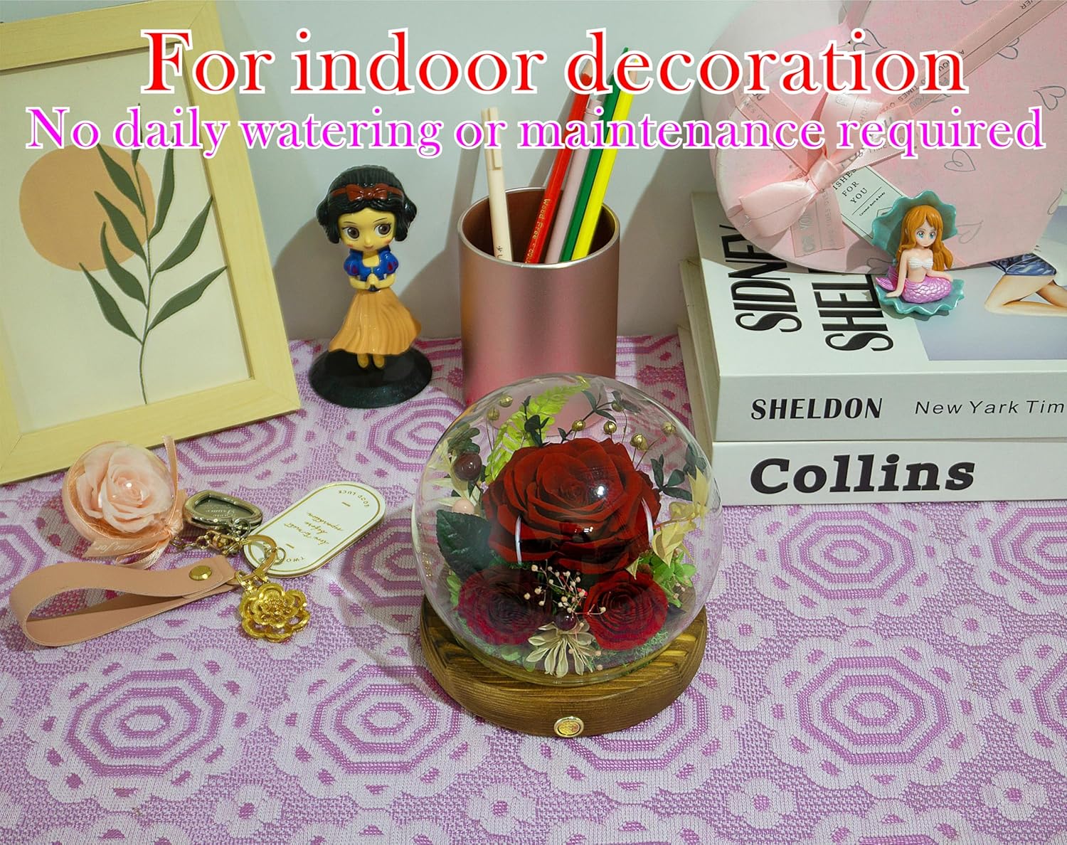 | Included Components | Preserved Flowers in Glass Dome on Wooden Base, 3 Batteries, a Greeting Card, a Gift box with a bowknot. |