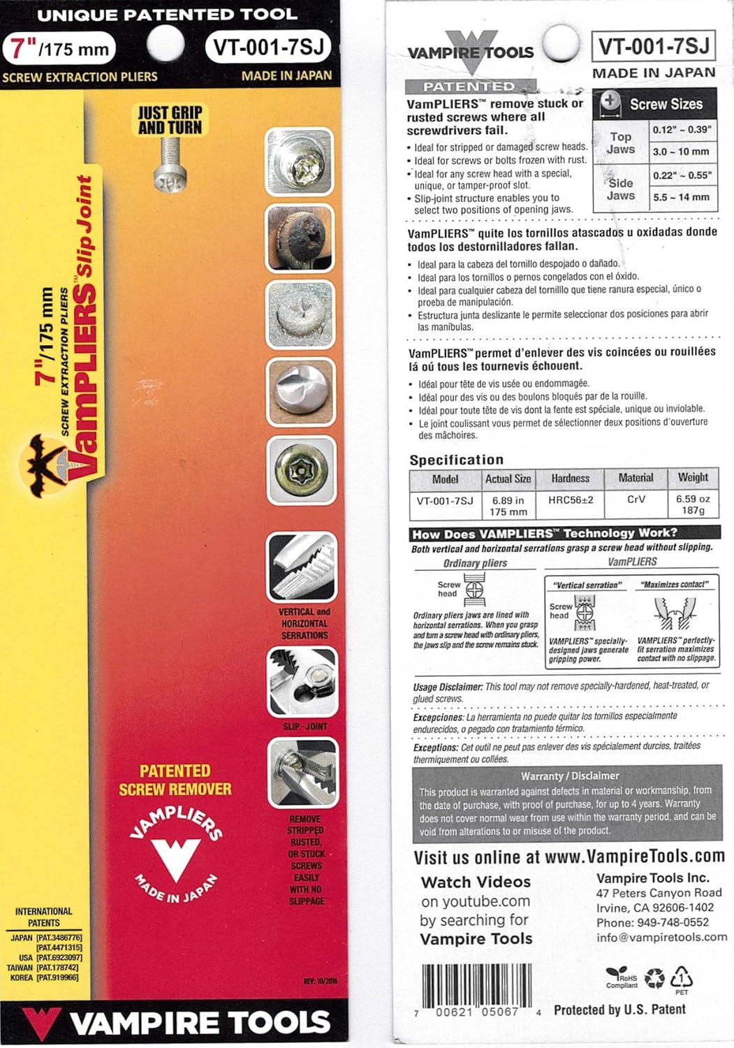 | Manufacturer Warranty Description | ?5-year warranty with tool registration from Vampire Tools website (4-year warranty with regular purchase) |