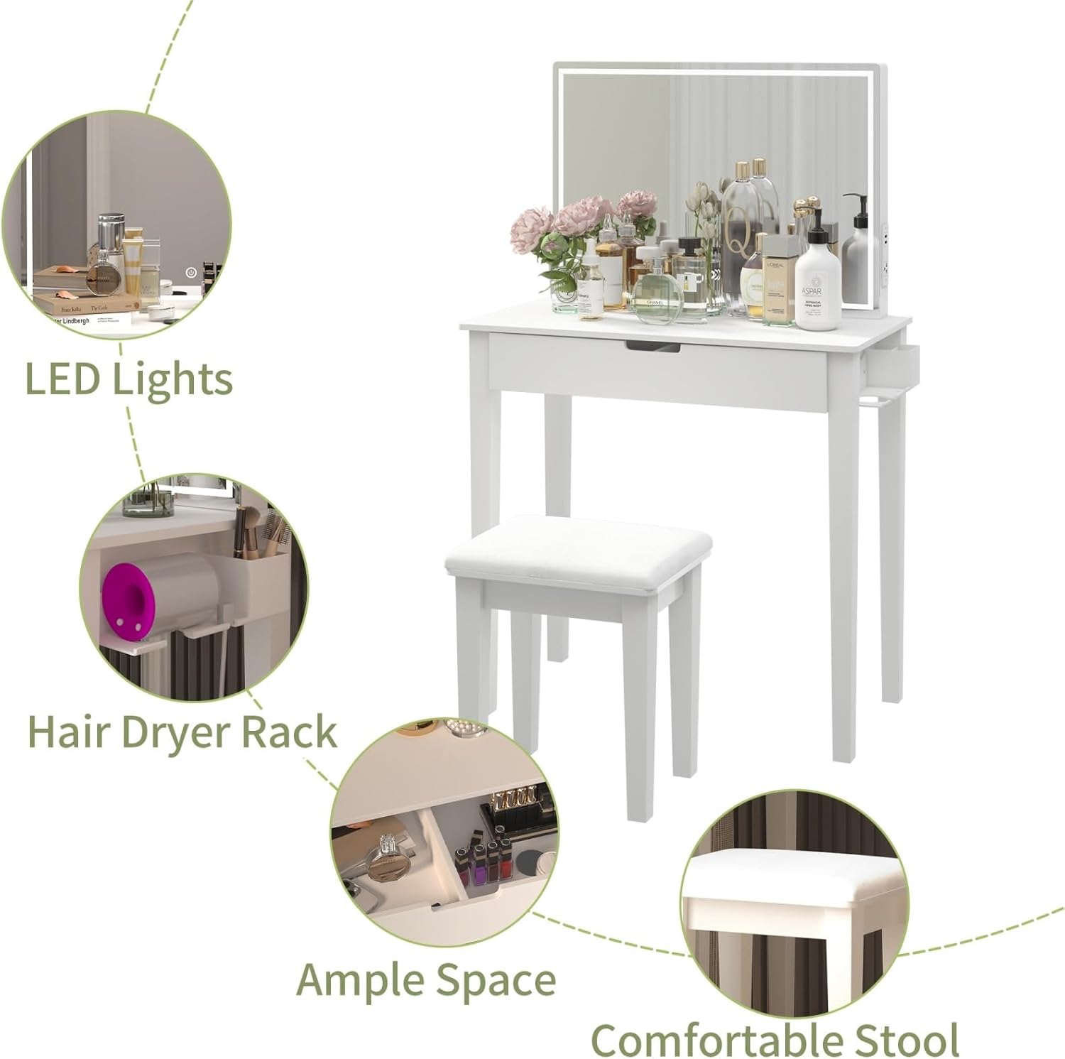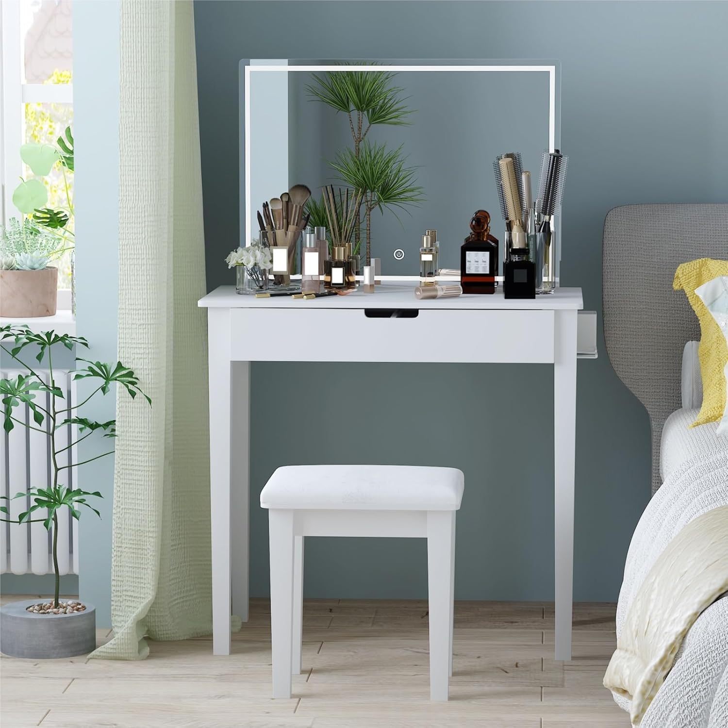 Main Color:WhiteMain Material:MDF+glassNumber of Drawers:1 DrawerFinish:WhiteType of Storage Included:DrawerWood Type:PineProduct DimensionsAssembled Length (in.):31.50Assembled Width (in.):15.70Assembled Height (in.):49.40Product Weight (lbs.):44.20