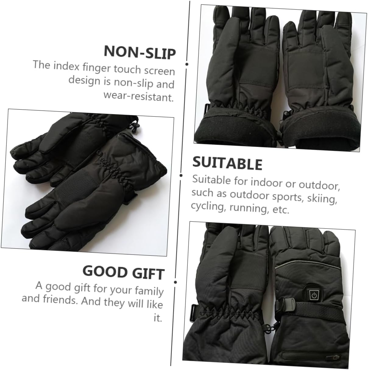 Package Include 1 x Pair of Gloves 2 Boxes Characteristics -Material: Nylon Taslon & Water-proof Fabric & Leather Outdoor Heating Glove -Size: Approx. 34 cm / 13.39 x 5.12 x 3.15 inch Heating Gloves -Color: Black Motorcycle Heating Gloves - Intelligently adjust the temperature, the three-level temperature that can be adjusted to the appropriate temperature according to the environment Ski Warming Gloves Electric Heated Gloves. - The index finger touch screen design is non-slip and wear-resistant, and can be used with mobile phones and other electronic devices Outdoor Heated Gloves. - Suitable for indoor or outdoor, such as outdoor sports, skiing, cycling, running, etc Unisex Heating Gloves. - Made of material, and for use Winter Warm Gloves. - A good for your family and friends. And they will like it Hands Warmer.Goods InformationMotorcycle Warm Gloves Suitable for indoor and outdoor use.Hands Warmer It your hands warm in the cold winter.Winter Heating Gloves Choose .Ski Warming Gloves Electric Heated Gloves This product is a pair of heating gloves, made of leather, nylon taslon and water-proof fiber material, and