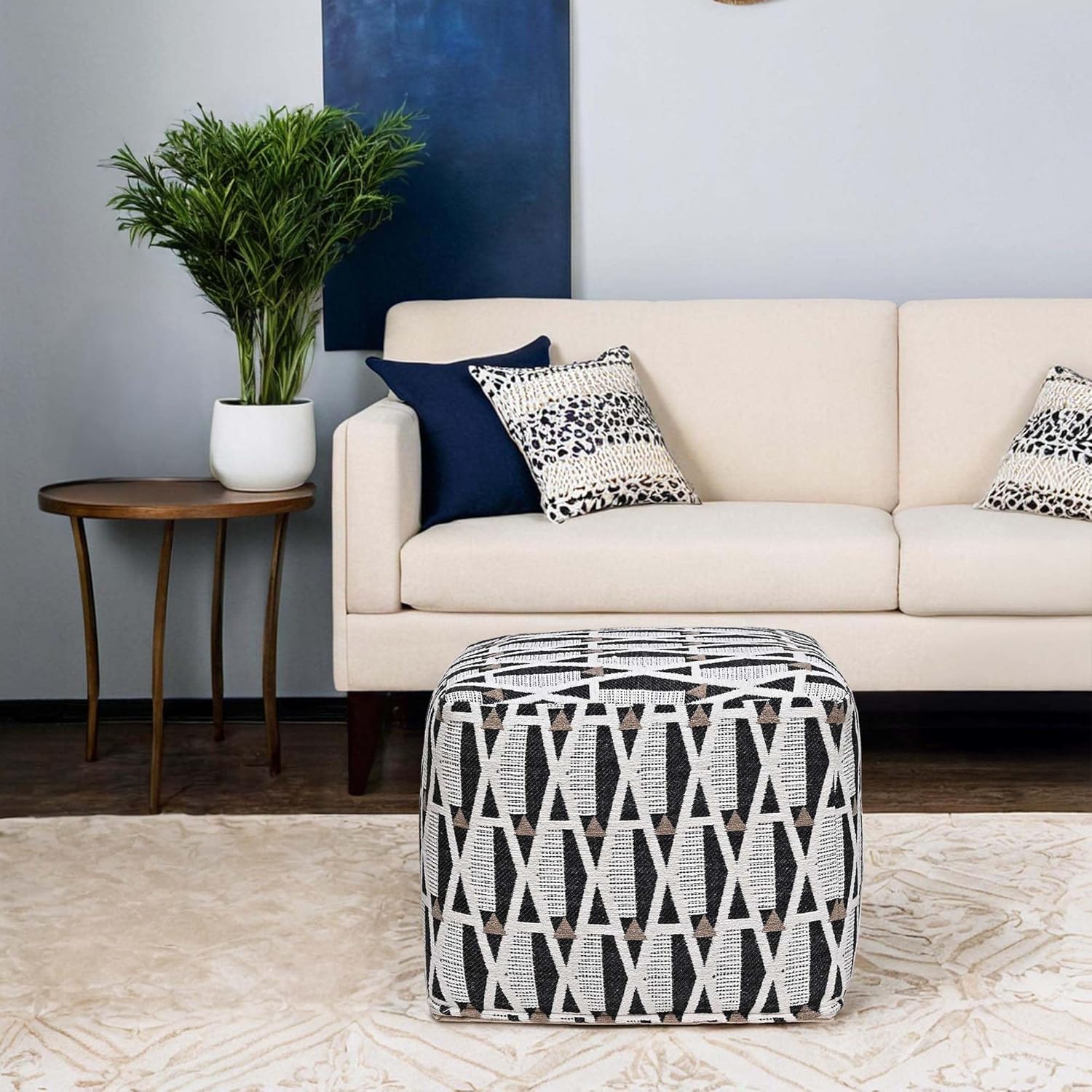 The VARA Square Pouf Ottoman is a handcrafted cotton footstool designed to add comfort and character to any space. Featuring a textured, patterned fabric and sturdy construction, it works perfectly as extra seating, a footrest, or a decorative accent. Its versatile design makes it suitable for living rooms, bedrooms, offices, nurseries, or kids’ rooms. Fully assembled and lightweight for easy placement, this pouf blends modern style with everyday comfort.