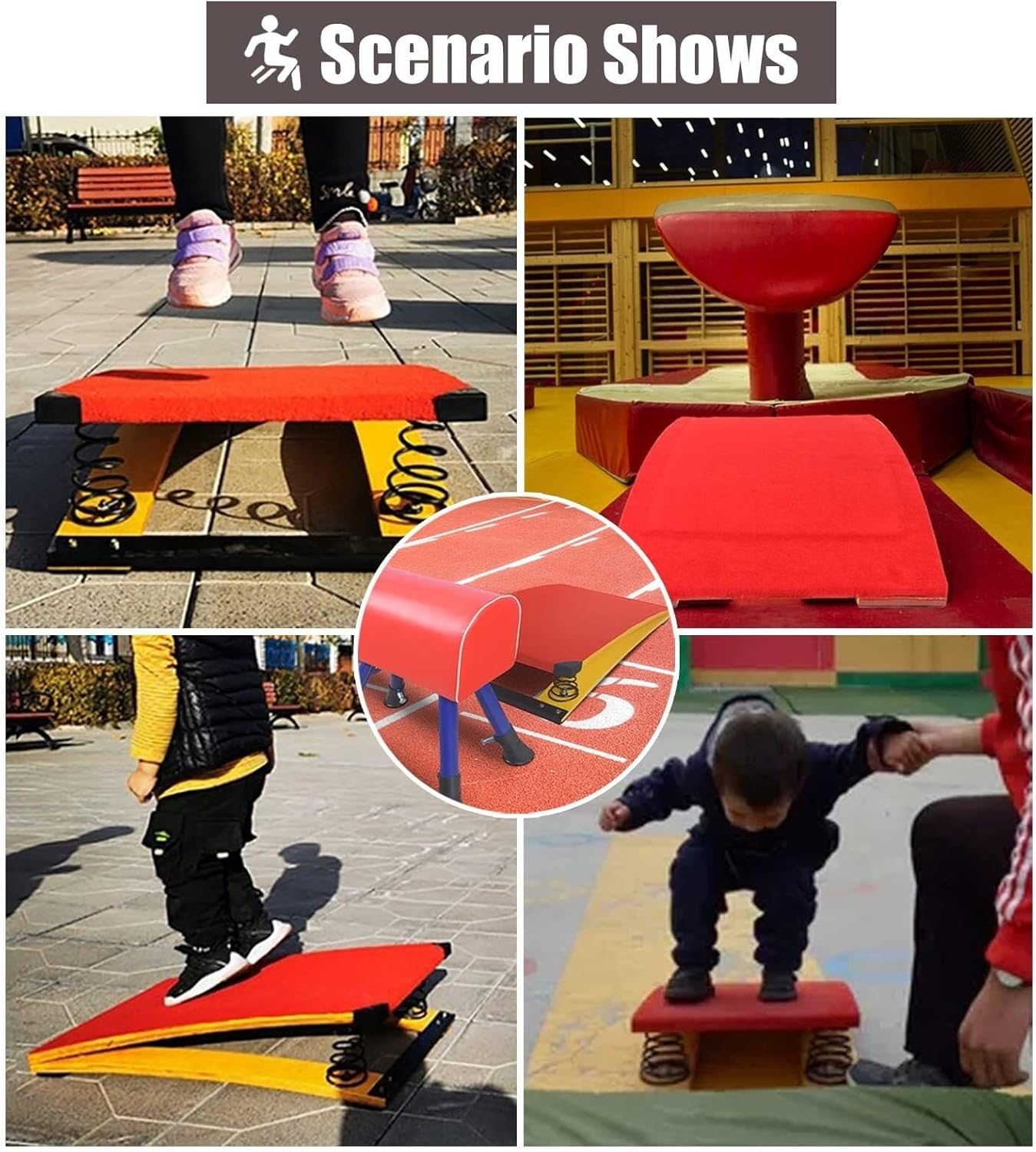 The Vault Gymnastics Springboard for Kids is an essential training tool for young gymnasts and athletes looking to improve their skills in vaulting, tumbling, and more. Made from heavy-duty hardwood, this springboard is both and smooth, with a load capacity of 55 kg (121 lbs), making it suitable for children and teens. It is built to withstand extensive use without breaking or warping.Equipped with 2 high-elasticity steel springs, it provides superior bounce and stability, allowing young athletes to jump higher while conserving energy during their training sessions. The non-slip felt surface on the top ensures a secure grip, enhancing safety and comfort while jumping or landing, making it a perfect choice for beginners.This springboard is ideal for home, school, or sports clubs, helping children develop their vaulting technique, improve muscle coordination, and strengthen their bodies. It can also be used for a wide range of activities such as obstacle courses, horizontal bar practice, and stretching exercises. The compact size (50x80x20 cm) is convenient for any space, and the easy-to-use design requires no assembly.