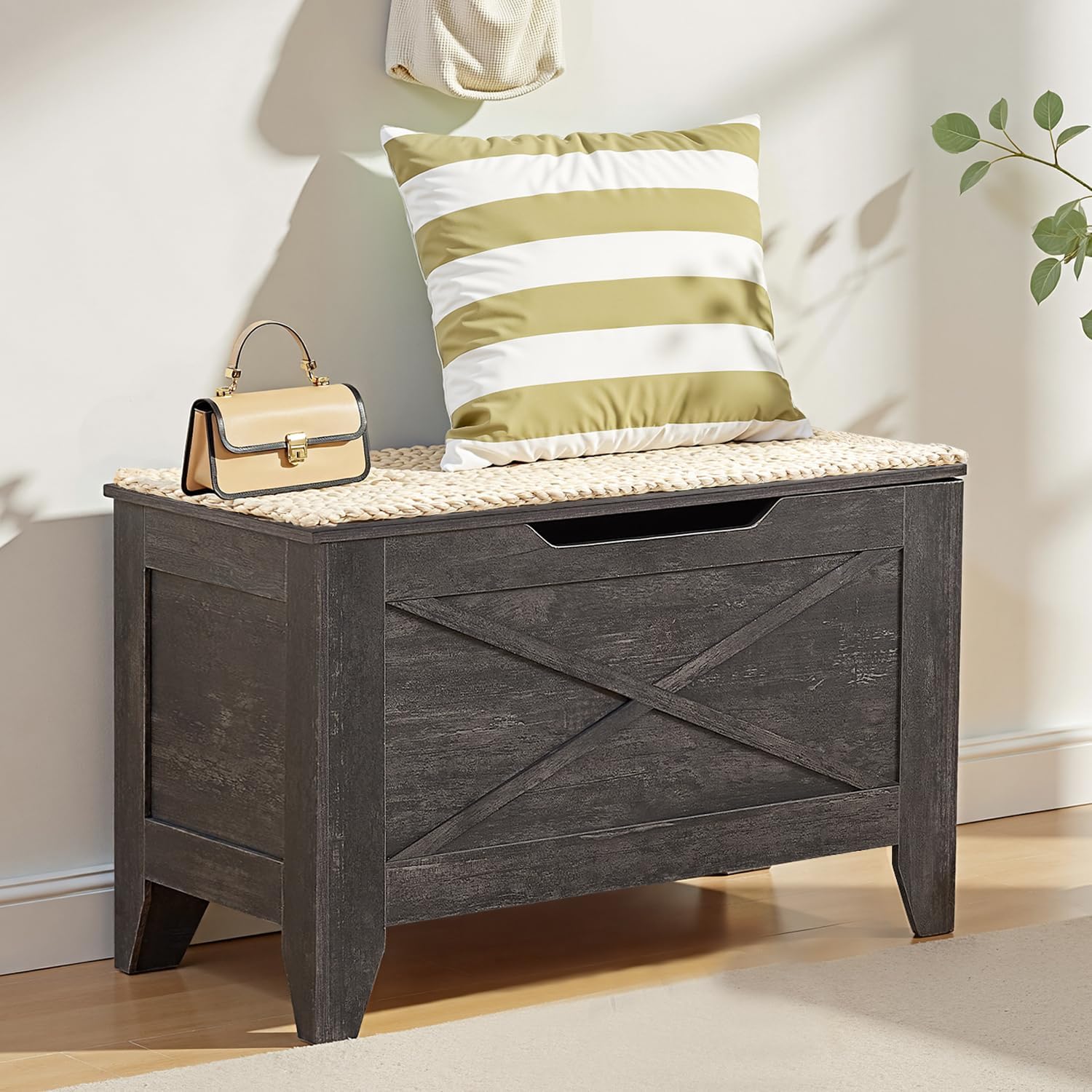 | Item Type Name | Shoe Bench with Handwoven Wicker Cushion, Ottoman Storage Trunk with Safety Hinges, Ideal for Entryway, Bedroom, Living Room, Gray |