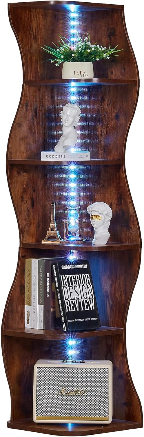 | Model Name | VECELO 6-Tier Compact Wave Corner Bookcase with LED Lights |