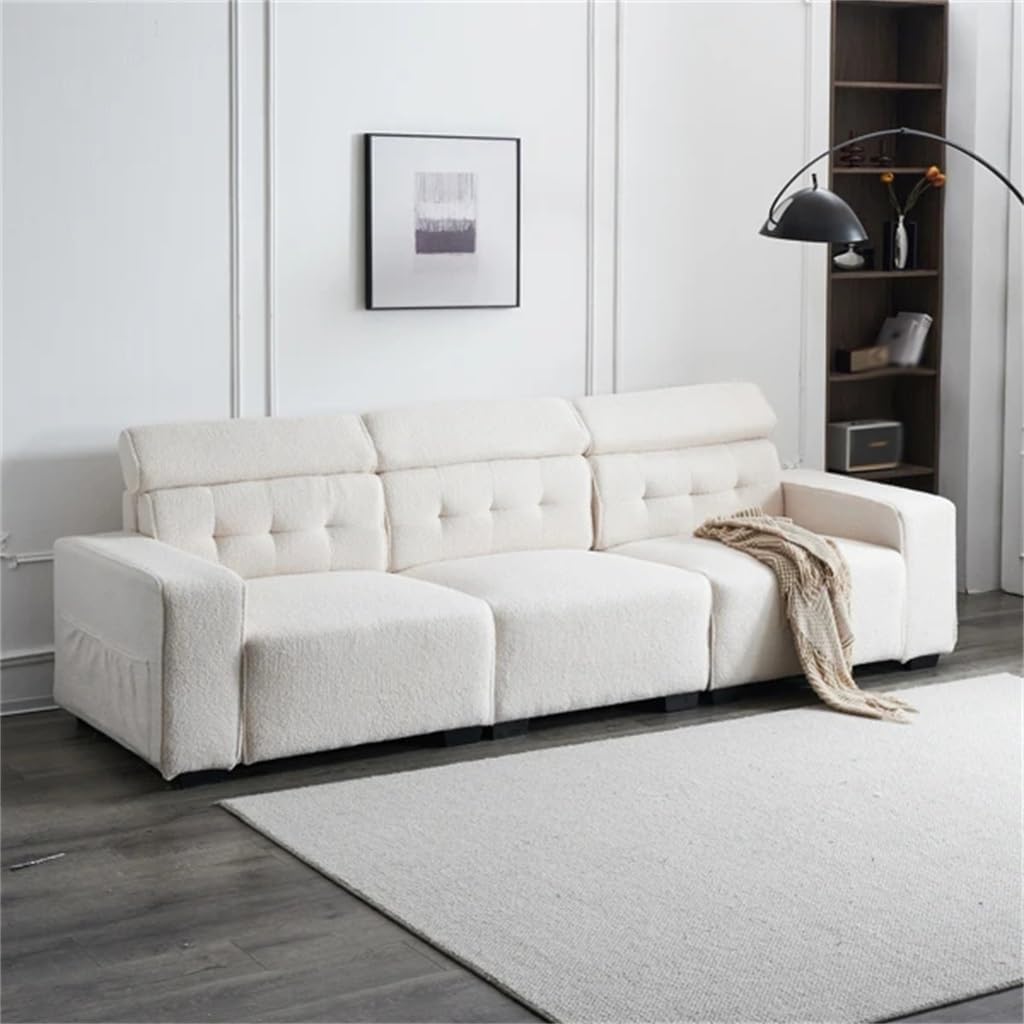 Solid frame: The main frame is made of solid wood, which provides reliable support and makes the product sturdy and .The size is 306*96*83cm, wide armrest design, the total load-bearing is about 1100 pounds, providing comfortable sitting feeling, suitable for three peoples.The Velvet fabric makes this product add a noble and grand atmosphere to your room.The 9-level adjustable cushion provides you with a more comfortable resting angle.Assembly:Detailed instructions in the package. 1. Specifications: (120.47 x 37.8 x 32.68)" / (306 X 96 X 83)Cm(L X W X H)2. Weight: 227.08Lbs / 103kg3. Fabric Material: Velvet4. Feet: Black Plastic FeetPackage Includes:1 x Indoor Multi-Person Sofa(no other presentation items included).Notice:1. Due to manual measurement, please allow 2-3% error, before you bid, please make sure you don't mind.2. The color may vary due to different displays, please refer to the actual product.