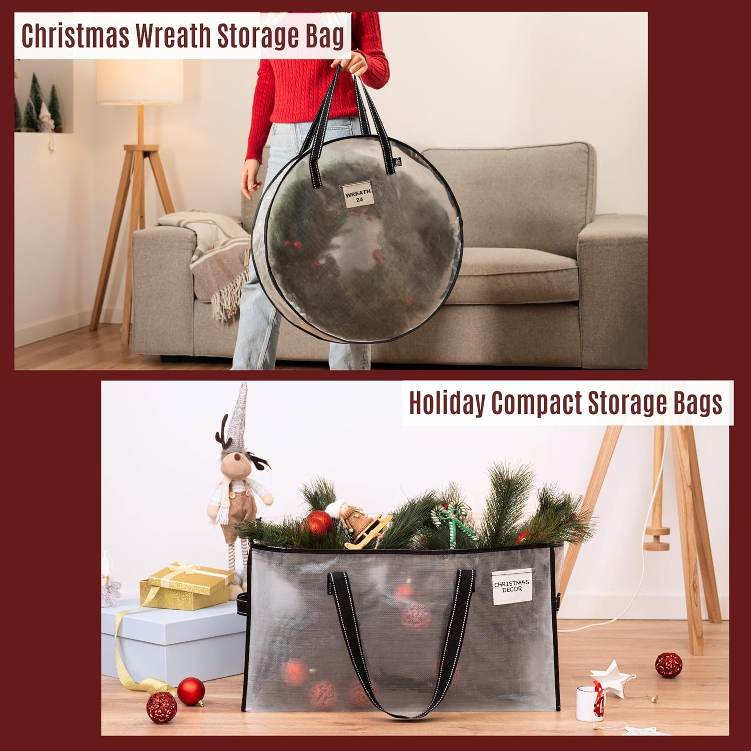 Keep your holiday decorations organized and protected year-round with our exclusive bundle! This set includes two 24" clear wreath bags and 4 large clear storage bags. Each item is crafted from durable, clear material for easy identification and access. Perfect for maintaining the pristine condition of your festive gear!