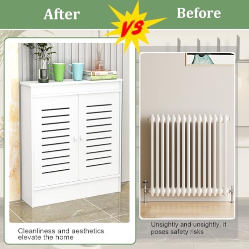 Transform your home with our elegant heating decorative cabinet and radiator covers, designed to blend style with functionality. These modern radiator covers feature ventilation slats that ensure optimal airflow while providing additional storage space with their built-in shelves. Made from high-quality MDF, each decorative piece not only conceals unsightly radiators but also elevates the aesthetic of any room. Ideal for living rooms, bedrooms, and hallways, our covers are available in various sizes and shapes to suit your needs. Whether you're looking for a steam radiator wall heating louvered cabinet or a sleek modern radiator cover with shelves, our products are crafted for durability and convenience. Enjoy a warm and organized environment with our protective heating cabinets that seamlessly merge design and function. Please note that assembly is required, and we recommend measuring your radiator to ensure a perfect fit. The inner dimensions are typically 5cm smaller in length and height, and 2.5cm smaller in depth than the outer measurements. Upgrade your home décor with our stylish and practical radiator covers, perfect for enhancing any space while keeping your heating elements discreet. Make your home not only warm but also beautifully organized and functional.