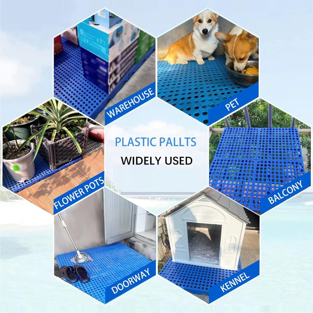 The blue hue of the commercial pallet is not only practical and easy to clean, but also aesthetically pleasing. Even after long-term use, its color remains bright and vivid, adding visual appeal to the storage environment.Specifications:Material: HDPEColor: blueSize: 40 x 40 x 5cm/15.75 x 15.75 x 1.96in50 x 50 x 5cm/19.68 x 19.86 x 1.96inFeatures:Polyethylene material: durable and moisture-proof.Lightweight design: easy to carry and stack.Adapt to various climates: withstand all weather conditions.Easy to clean: keep hygiene and easy maintenance.Bright colors: beautiful and durable.Keep dry: suitable for warehouses, supermarkets, etc., to ensure that items are dry and ventilated.Package includes:4 x Plastic palletNotes:Manual measurement, please allow slight errors on size.The color may exist a slight difference due to different screen displays.