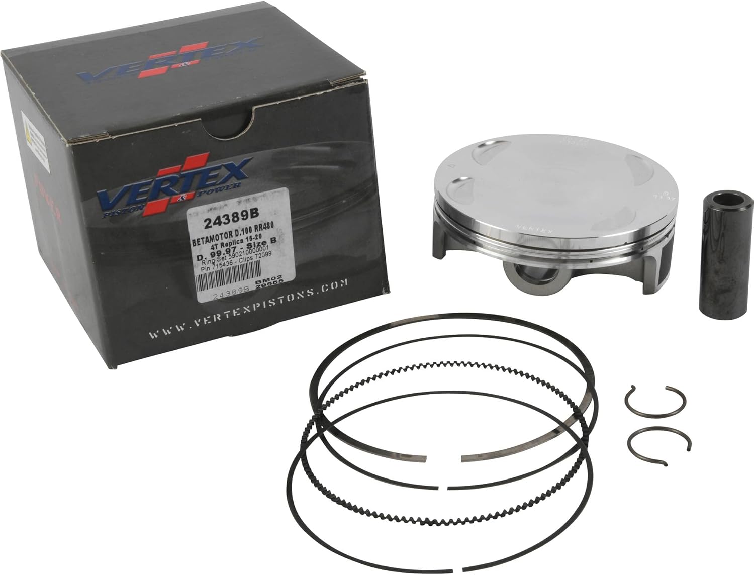 **Verify the part fits before purchasing**Specs:Description: Forged Replica Piston KitCompression Ratio: 11.86:1Cylinder Diameter: 100 mmDisplacement: 480 ccPiston Diameter: 99.970mmCompatible With/Replacement For:Beta RR 4T 480 2015-2025