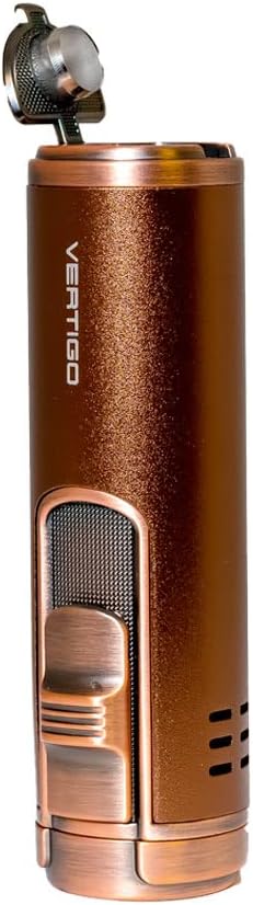 The Vertigo Eloquence lighter is the choice for smokers who want power in their hands, who want a strong, passionate flame to spark up their cigars. Inside its sturdy metal frame lies four wind-resistant torch flames, adjustable to the incredible height of ten thousand feet! Along with a fold-out cigar punch, a single action ignition, and a clear fuel window, the Vertigo takes lighter technology to new heights!
