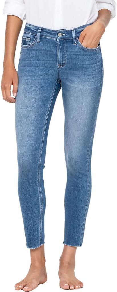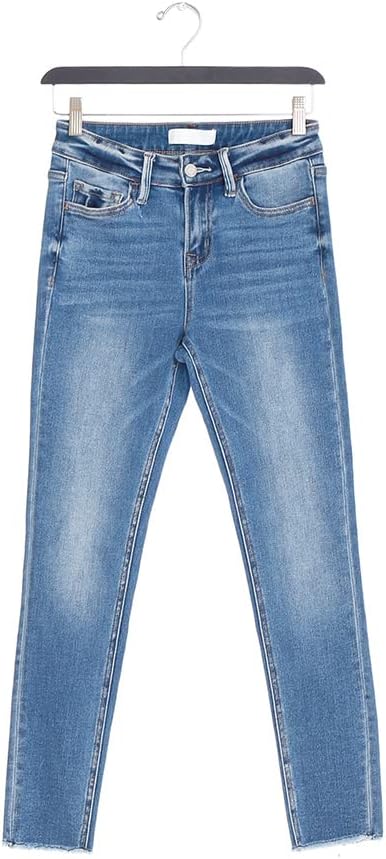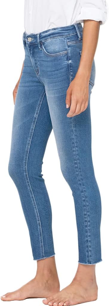 Vervet by Flying Monkey Jeans | Stretch distressed denim skinny jeans | Whiskering and fading wash | Mid-rise waistline | Cropped length and raw edge finished hems | Five pockets style | Button and concealed zip fastening at front | Unlined