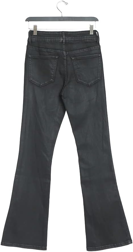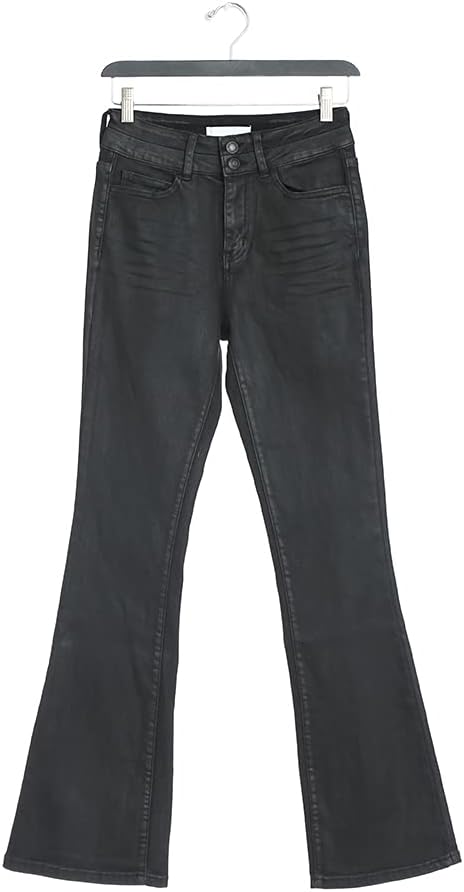 Vervet by Flying Monkey Jeans | The glossy coated black slim flare jeans | High-rise waist and flare below the knee silhouette | Double button and concealed zip fastening at front | Comfort stretch denim | Long length | Has 5-pockets