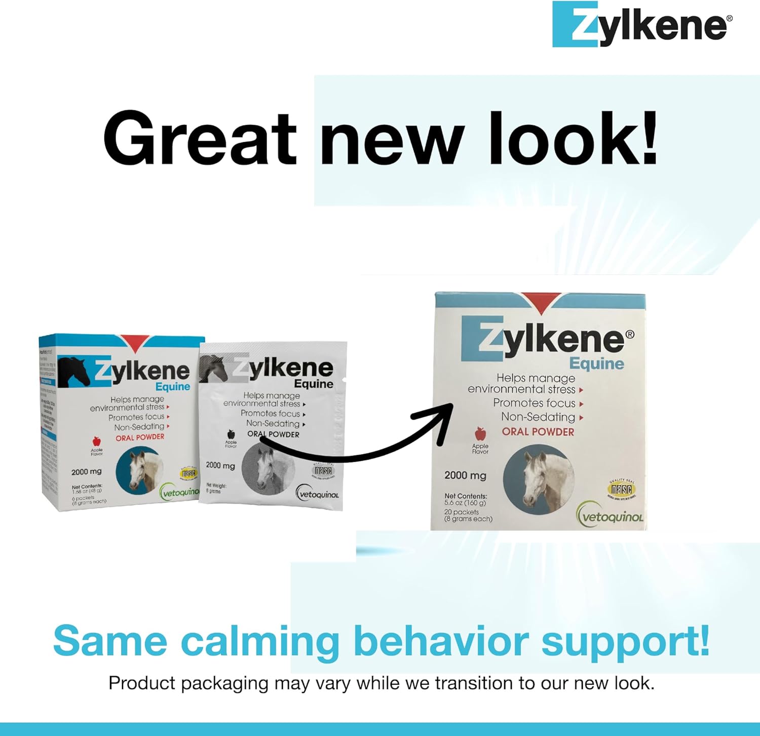 | Active Ingredients | Zylkene Equine contains 2000mg of bovine-sourced, lactose-free hydrolyzed milk protein called Alpha-S1 Tryptic Casein, commonly known as Alpha-Casozepine. This active ingredient has unique calming properties. It also contains two inactive ingredients: Apple Flavor and Maltodextrin. |