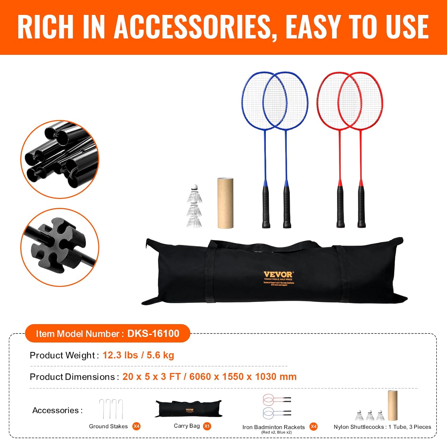 | Included Components | 1 x Badminton Net, 1 x Set of Accessories |