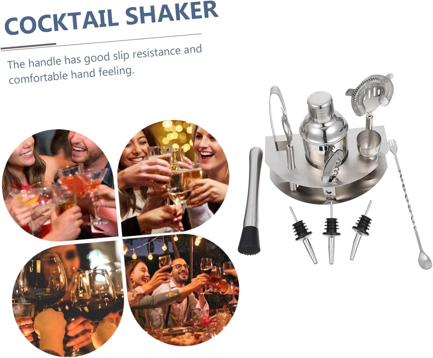 Package Include 1 x set of cocktail shaker Characteristics -Packing size: About 22.00X17.00X12.00cm/8.66X6.69X4.72inch Household Cocktail Tools -Material: Stainless steel Cocktail Making Tools -Color: Silver Stainless Steel Barware - Suitable for bar parties, family gathering, friends gathering, banquet, etc Cocktail Shaker. - Perfect for making iced coffee, tea, cocktails and fancy drinks Bartender Kit. - The handle has good resistance and comfortable hand feeling Bar Tools. - Professional cocktail shaker tool set is suitable for home or bar use Cocktail Strainer. - Widely applied in home, coffee shop, milk tea shop, bar, etc Stainless Cocktail Shaker.Goods DescriptionCocktail Tools for home or professional use, create masterpieces .Stainless Steel Cocktail Tools If you would like to impress your friend by making drinks, you need this set of drink shaker tools.Bar Tools Whether you are an drink enthusiast or even a professional bartender, this cocktail kit is perfect for creating great-tasting drinks