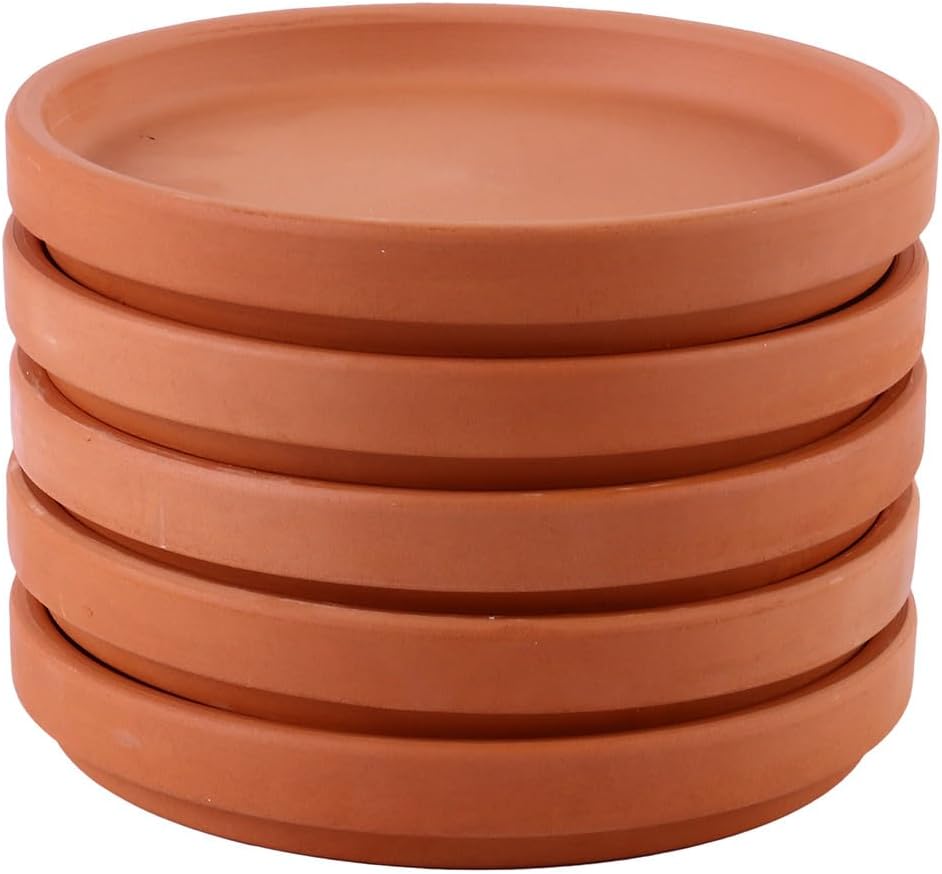 Description Keep your indoor or outdoor areas neat and stylish with this 5-piece pottery plant saucer set. Made from durable clay, each tray provides an attractive base for your flower pots while catching excess water and soil to protect surfaces from stains and damage. Lightweight and easy to move, they help you maintain a clean, organized garden or home display — whether you’re arranging a few houseplants or refreshing your patio setup Features - Color: Chocolate -Material:Pottery - Size: 16.00X16.00X2.50cm/6.29X6.29X0.98in Package Including5 x flower pot saucers