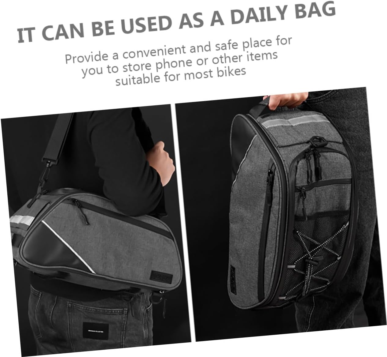 Package List 1 x Bike Bag Features -Color:Black bike storage bag -Size:40.00X19.50X18.50cm/15.72X7.66X7.27in bicycles bag -Material:Nylon bicycles saddle bag -Provide a convenient and place for you to store phone or other items, suitable for most bikes bike accessories for adult bikes. -There are reflective strips on both sides of the riding bag, for night riding, outdoor cycling, etc cycling accessories. -It is also to use as grocery bags for when going or as touring bags when traveling outdoor bicycles bags for bikes. -Simplify the burden of riding and it can provide you with a relaxed and enjoyable cycling experience bike accessories. -The bike storage bag is made of and nylon material, and convenient to use mountain bike accessories.Goods Informationbike supplies Adoption of and strong materials, it is and .bike storage bags You can also share it with your family and friends who like cycling.bag for bicycles If you are looking for a bike bag, then come to see this product that we prepared for you