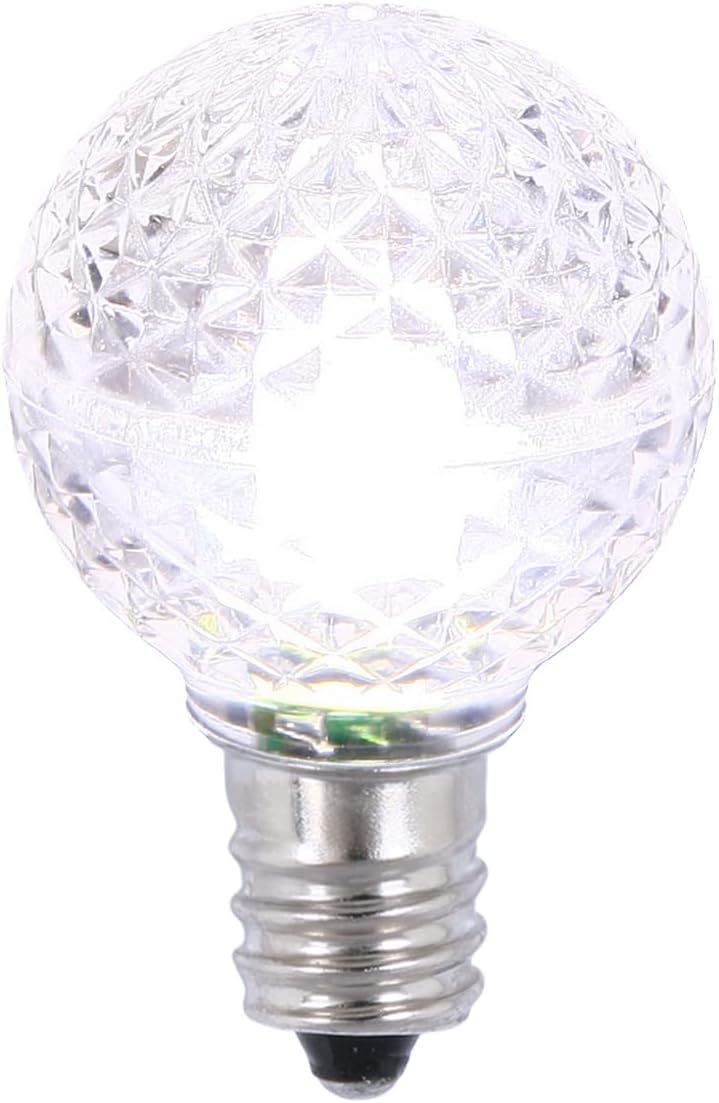 Vickerman G30 LED Orange Replacement Bulb. Features: E12 Nickel Base, 120 Volt, .38 Watts. Comes as a package of 25 bulbs.