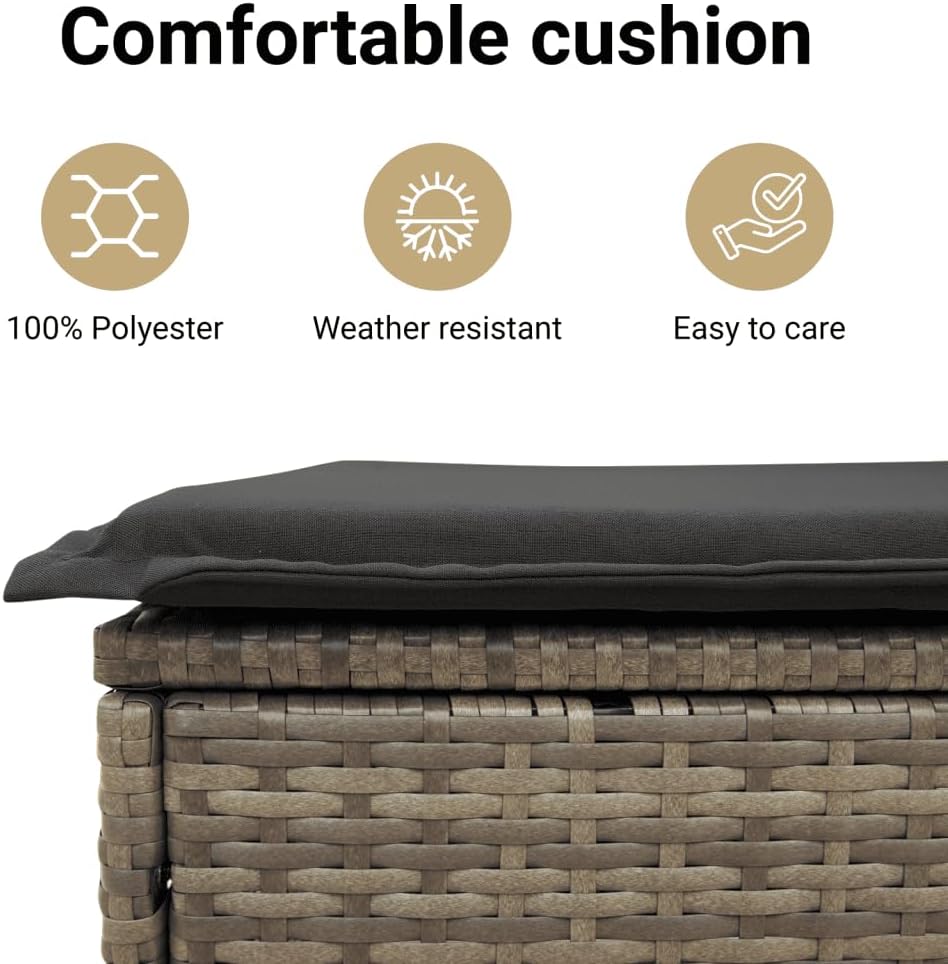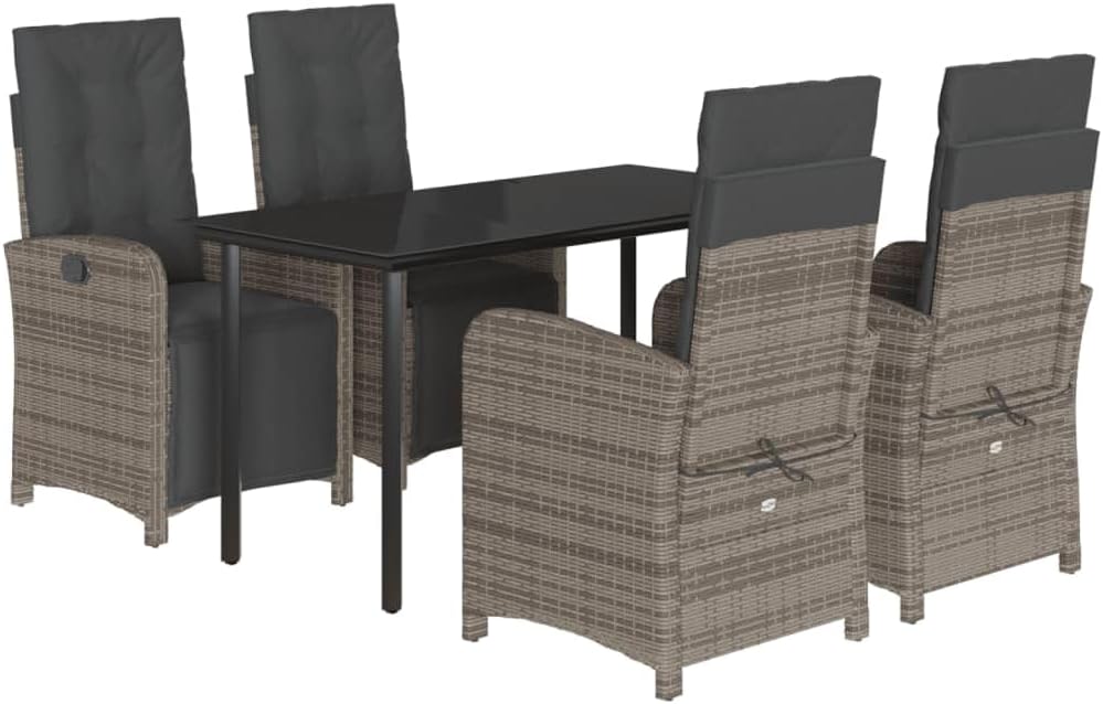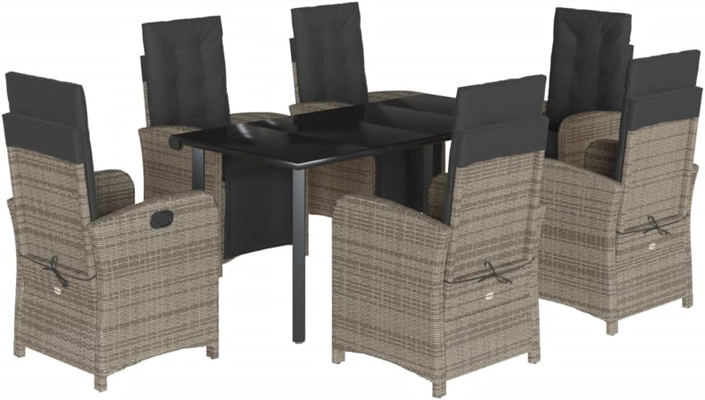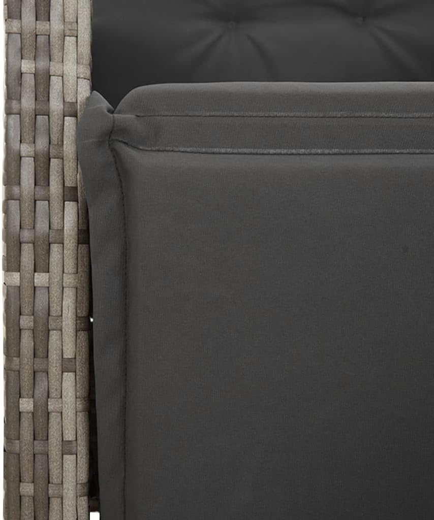 This 3 Piece Bistro Set brings together modern design and practicality, giving you a top-notch outdoor lounge area for relaxing and enjoying yourself. It's great for balconies, patios, or gardens, with a sleek design and compact shape that'll fit nicely anywhere outdoors.Adjustable Features: This bistro set's got multi-position backrests that let you set your seating just how you want for maximum comfort. Perfect for whatever chill-out style you fancy.Durable Materials: Made of UV- poly rattan and powder-coated steel, this set will last against weather elements. Its sturdy build means it'll keep looking good and working well for ages, no matter the outdoor conditions.Washable Cushions: Each seat's got cushy pads with removable covers zipped on for easy cleaning. Makes keeping your outdoor seating fresh and comfy a piece of cake.Stylish Design: With a sleek grey and black finish, this bistro set is modern and elegant. The posh tempered glass tabletop is easy to clean and serves as a lovely centerpiece for coffee chats.Space Efficient: Built for small areas, the compact design of this bistro set makes it great for balconies or tight patios. Enjoy meals or coffee without taking up too much room – it’s just right for intimate settings.Color: Grey Shape: SquareMaterial: Synthetic Poly RattanFinish: Powder-Coated Indoor/Outdoor: Indoor / OutdoorCover Included: NoRoom: Garden and TerraceHeadboard Included: NoCapacity: Maximum load capacity (per seat): 242.5 lbsMaximum Weit: 242.5 lbsDimensions: 31.5 x 31.5 x 29.1 in (W x L x H)Min-Max Dimensions: 36.6/43.3Leg Height: 29.1 inSeat Depth: 19.7 inSwings: NoLadder: NoBrand: vidaXLDelivery Contains: 2 Reclining garden chairsAssembly Required: Yes