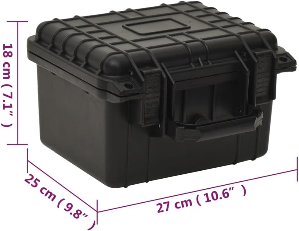 This practical fly bag is a perfect combination of robust protection and practical transport. Ideal for carrying valuables when travelling. Multiple protection: a robust exterior provides shock resistance, while the strong seal protects against water. In addition, the folding function of the travel case ensures extra safety. Portable design: you can easily grip the hard case by the practical handle. Soft foam insert: the carry bag is equipped with removable foam inserts to keep your belongings safe and secure. Pressure valve: the pressure valve can maintain the balance between inner and outer pressure, so that the toolbox can be better adjusted to different heights. Durable material: the foam coating is made of polypropylene and ABS, which makes it corrosion and temperature resistant. This gives it a long service life. Colour: black. Material: polypropylene, ABS. Foam material: polyurethane. Overall dimensions (L x W x H): 27 x 25 x 18 cm. Inner dimensions: 24 x 19 x 13 cm.