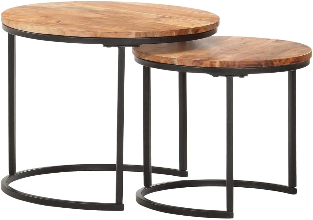 This set of two nesting tables adds a stylish and practical touch to any living room or hallway. The modern design, made from solid acacia wood, features a smooth surface with a natural oil finish. These tables are great for everyday use as well as special occasions.Space-Saving Design: The nesting feature allows for stacking, helping you save space while keeping it stylish in your room — especially useful for smaller living areas.Durable Construction: Made from solid acacia wood, these tables stand up to daily use without skimping on style. High-quality material goes towards they'll last for years.Versatile Functionality: Use these tables for coffee serving, as side tables, or even as decorative pieces in your hallway or study. Their clever design fits in anywhere.Elegant Modern Style: The contemporary round shape with an oiled finish adds a refined touch that fits well with your existing decor, enhancing any room's vibe.Ideal Dimensions: Each table is 19.7 inches in diameter and 15.7 inches tall, making them greatly sized for easy use in different spaces.Number Of Items: 2Color: BrownShape: RoundMaterial: Solid Acacia woodIndoor/Outdoor: Indoor OnlyCover Included: NoRoom: Living RoomCapacity: 2 tablesDimensions: 19.7 x 19.7 x 15.7 inLeg Height: 15.7 inWeight: 16.09 lbsBrand: vidaXLDelivery Contains: 2 tablesAssembly Required: YesSKU: 286186EAN: 8719883803173